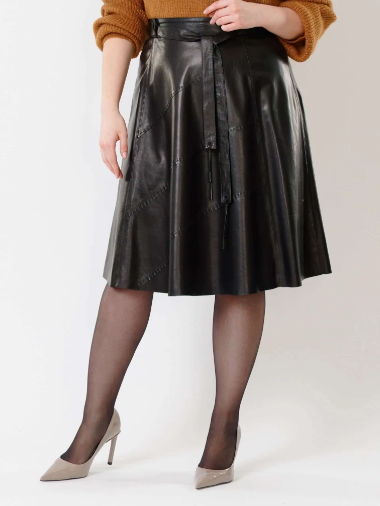 Товар кожаная расклешенная юбка из натуральной кожи 01рс, черная, размер 44, артикул 85461 выполнен из натуральной кожи с застежкой молния. Рассчитан на сезон: демисезон. Длина изделия 70 см, силуэт расклешенный.