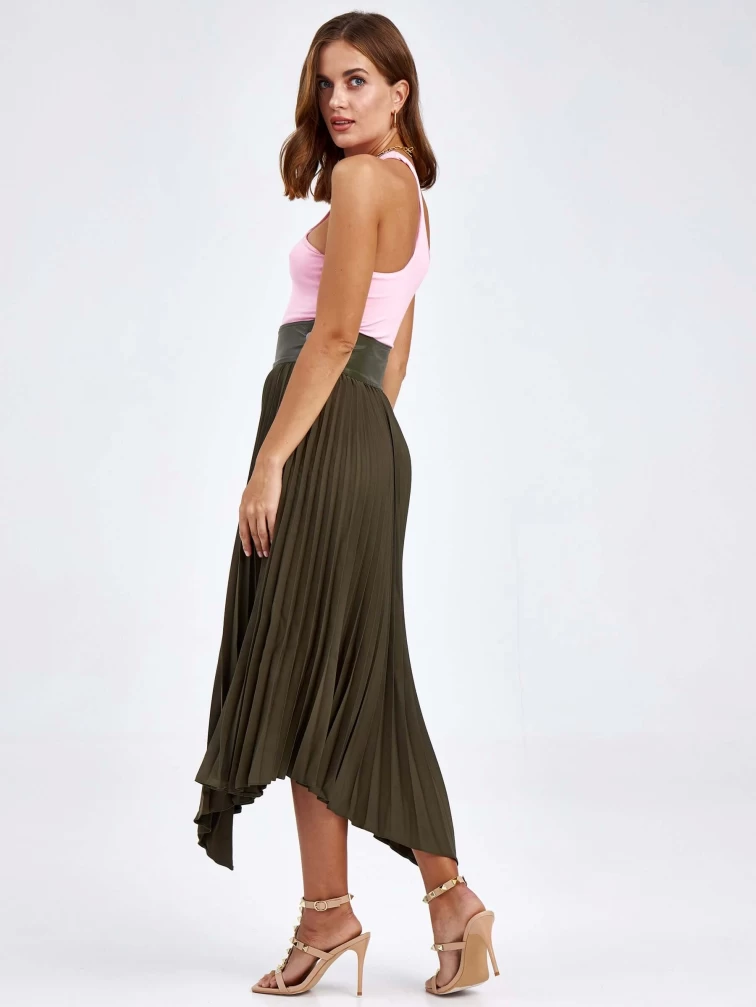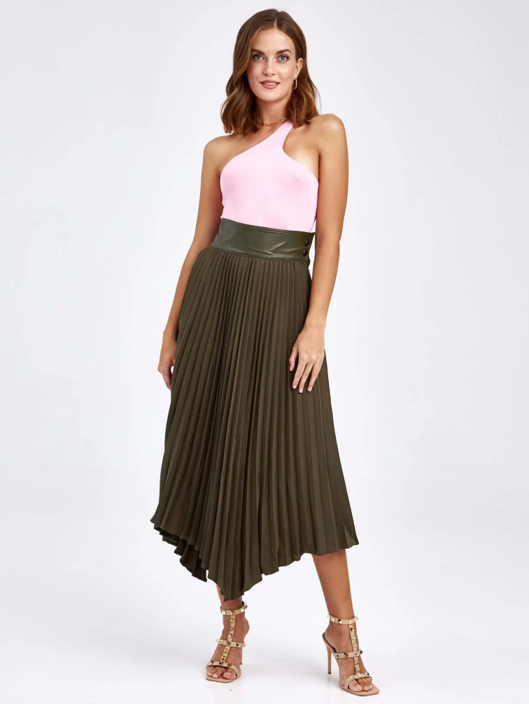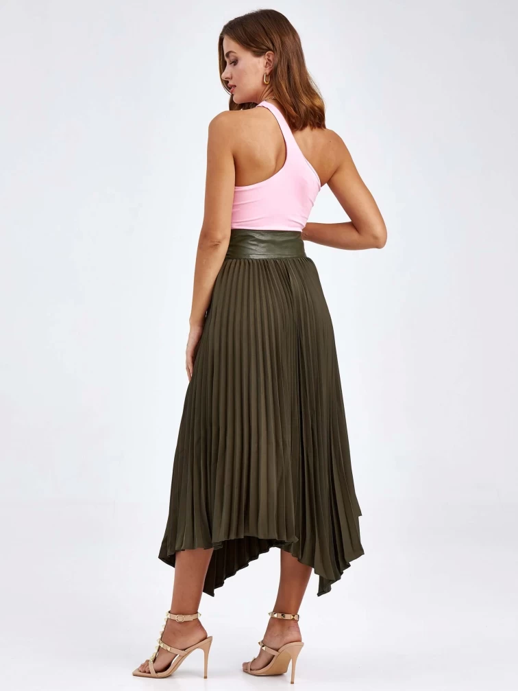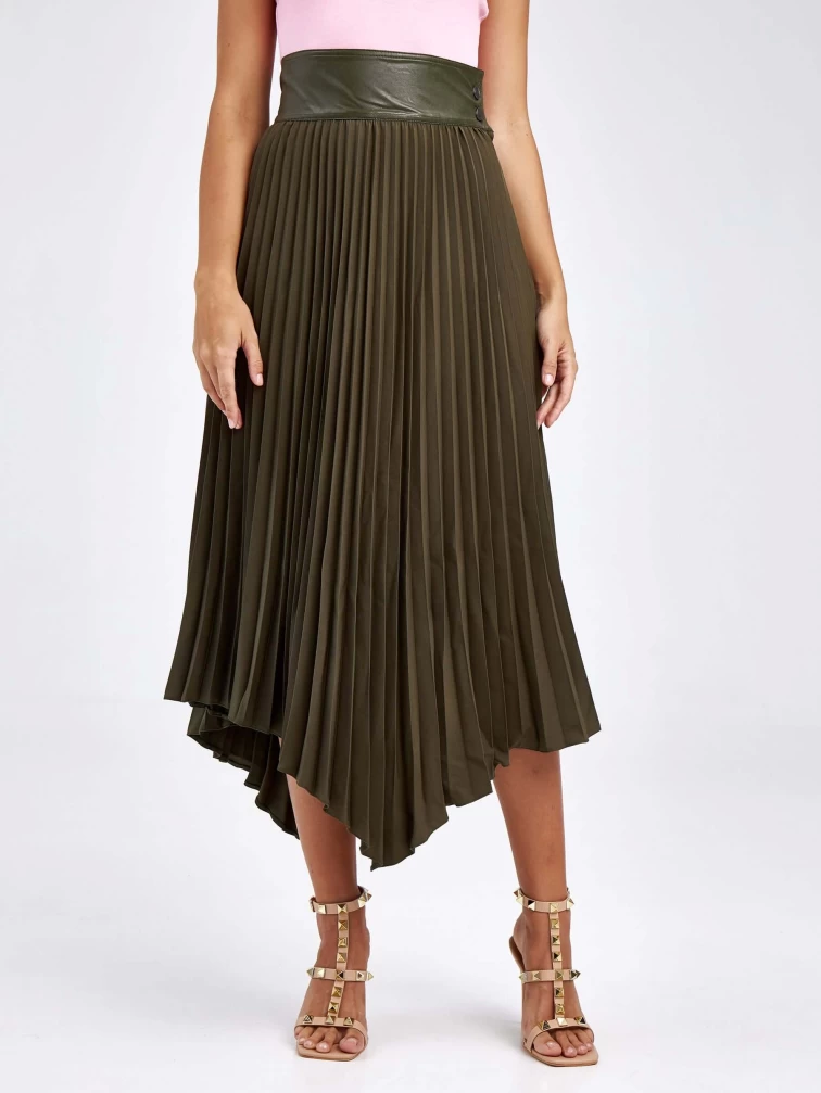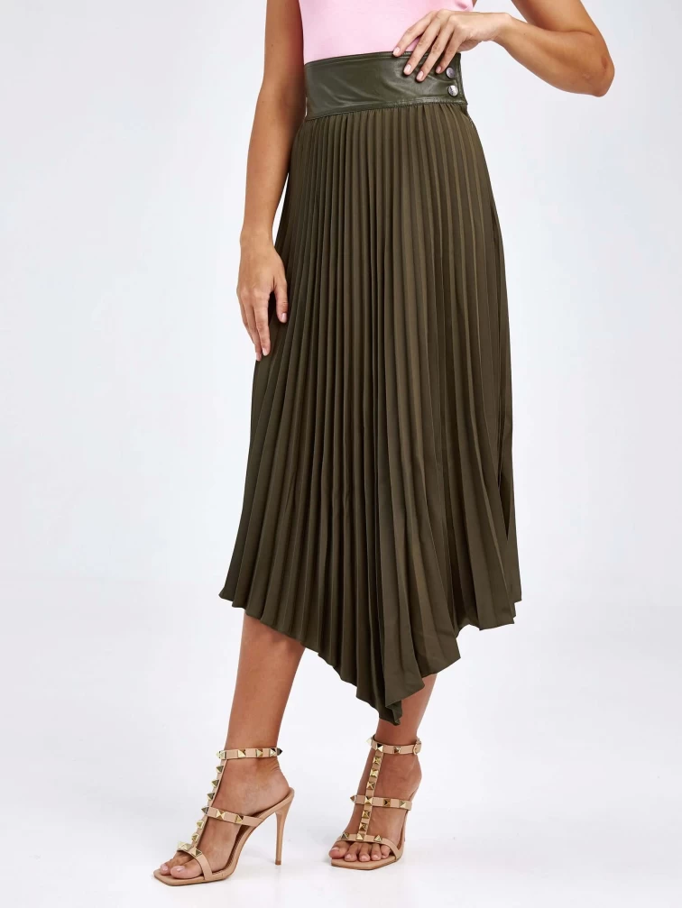 Женские кожаная юбка из экокожи 4820767, оливковая, размер 44, артикул 85820