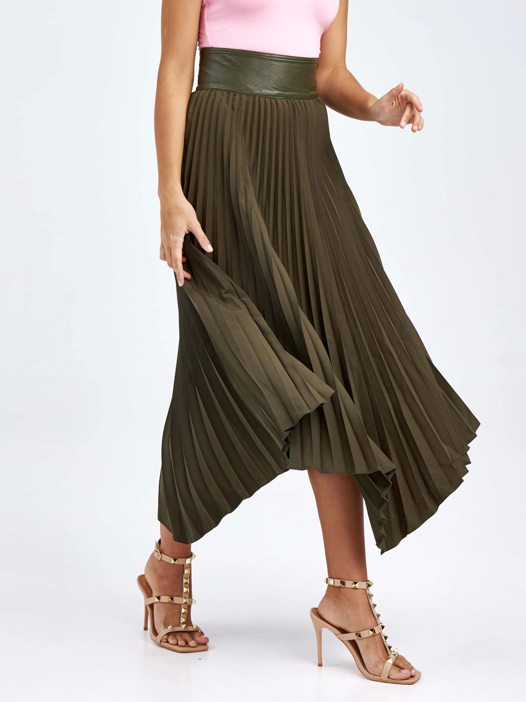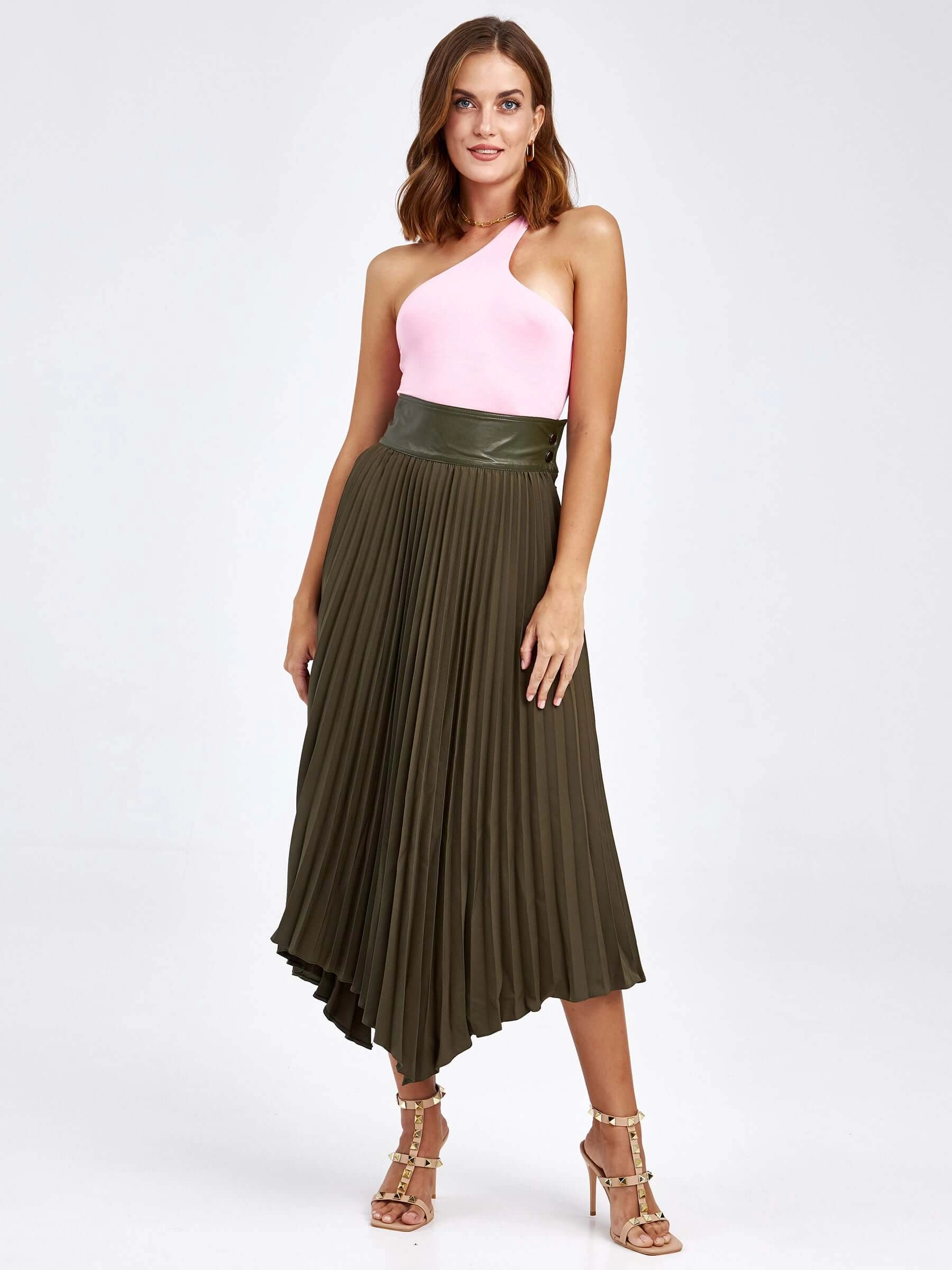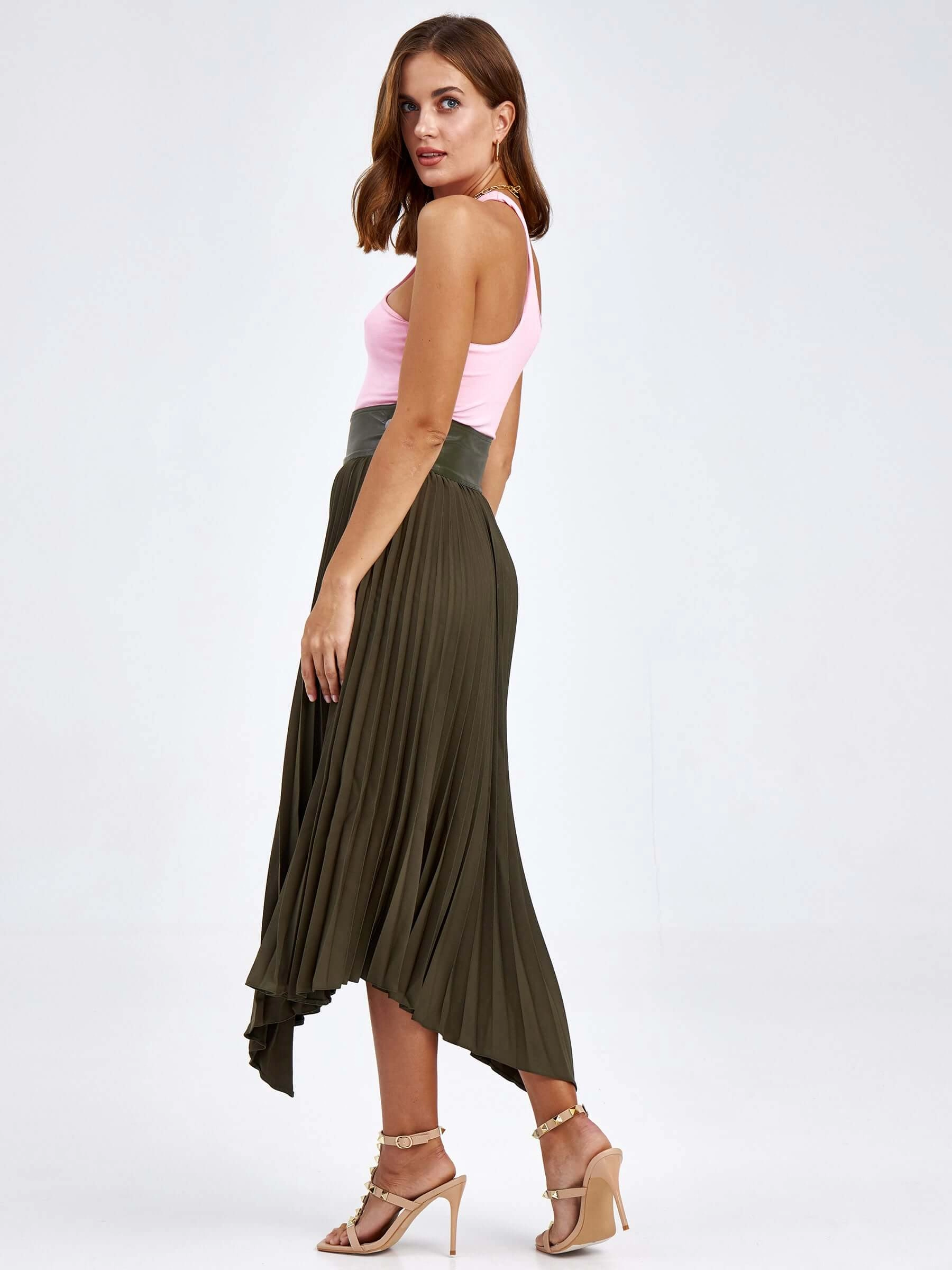 Товар женские кожаная юбка из экокожи 4820767, оливковая, размер 44, артикул 85820 выполнен из экокожи с застежкой молния. Рассчитан на сезон: демисезон. Длина изделия 75-90 см, силуэт расклешенный.