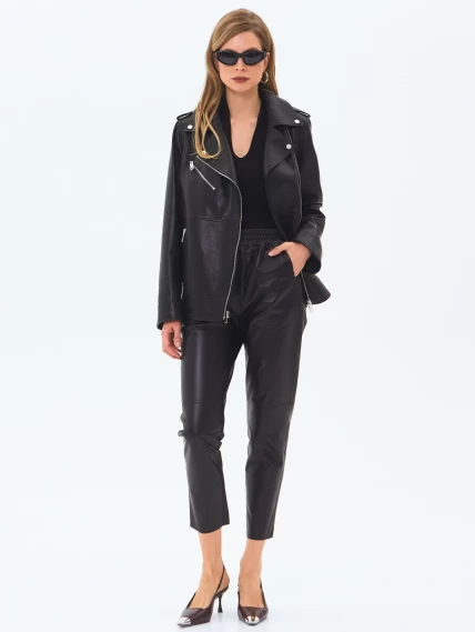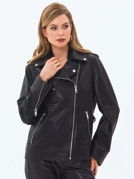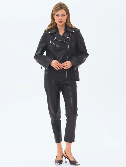 Кожаная женская куртка косуха премиум класса 3079, черная, размер 50, артикул 24650