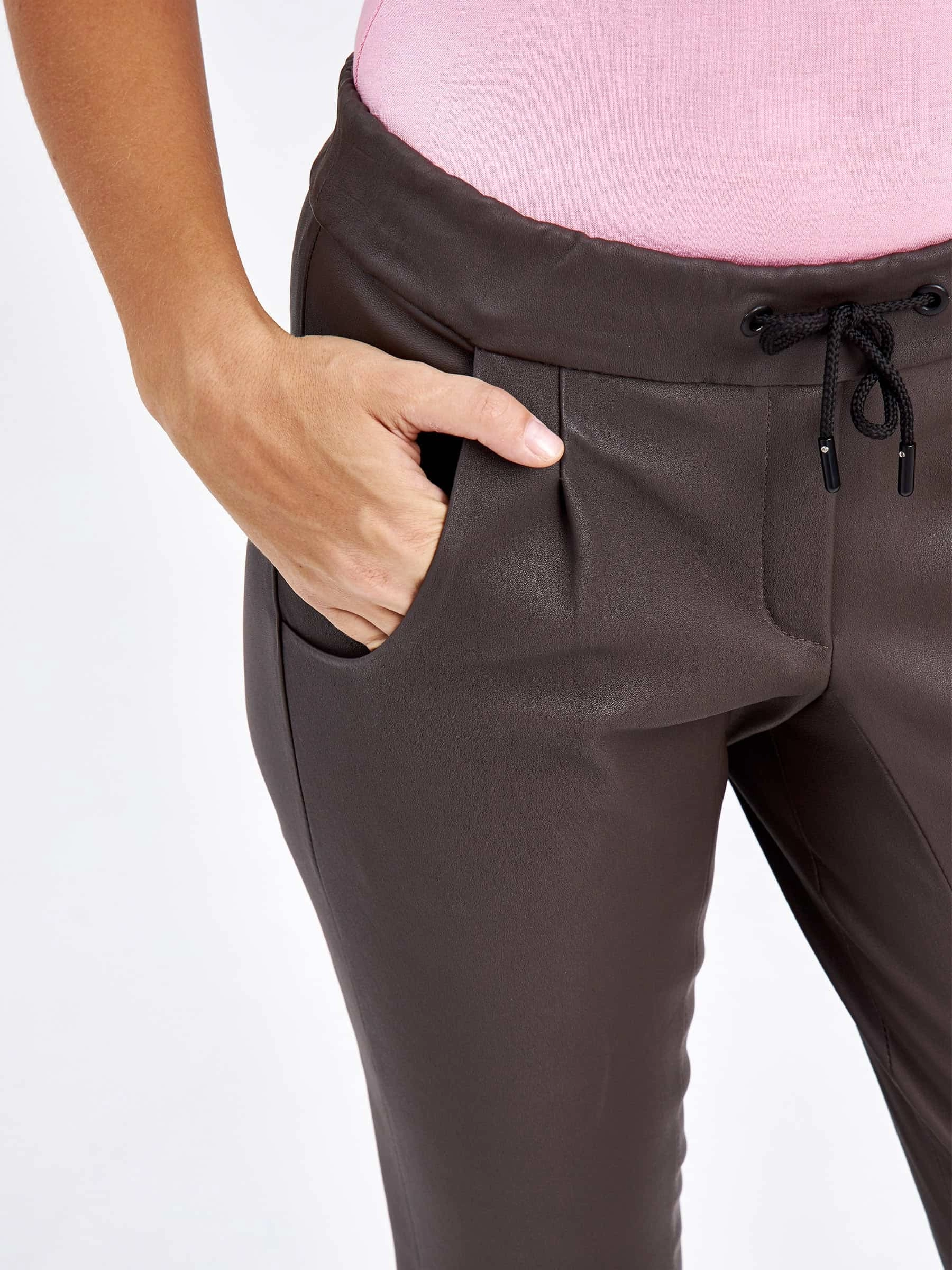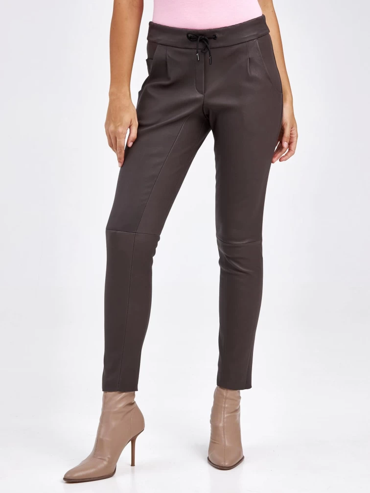 Товар кожаные женские брюки из натуральной кожи 07, коричневые, размер 42, артикул 85610 выполнен из натуральной кожи стрейч с застежкой резинка. Рассчитан на сезон: демисезон. Длина изделия свыше 90 см, силуэт облегающий.