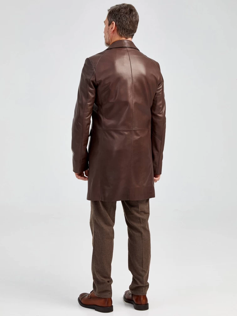 Товар удлиненный кожаный мужской пиджак премиум класса 539, коричневый, размер 50, артикул 29542 выполнен из натуральной кожи с застежкой пуговицы. Рассчитан на сезон: демисезон. Длина изделия 95 см, силуэт полуприлегающий.