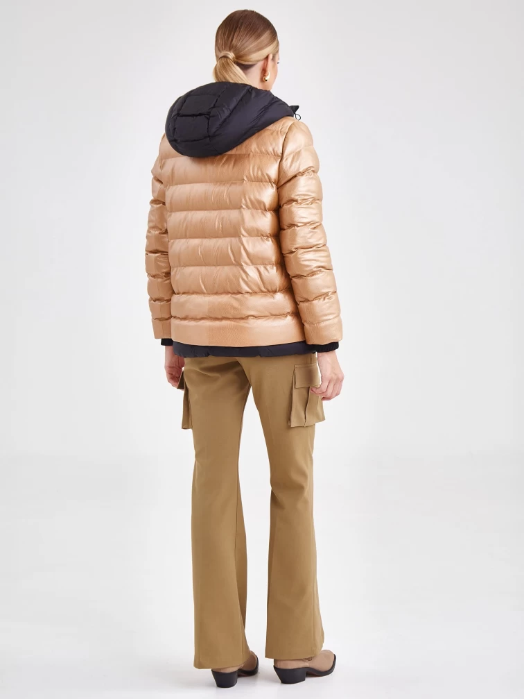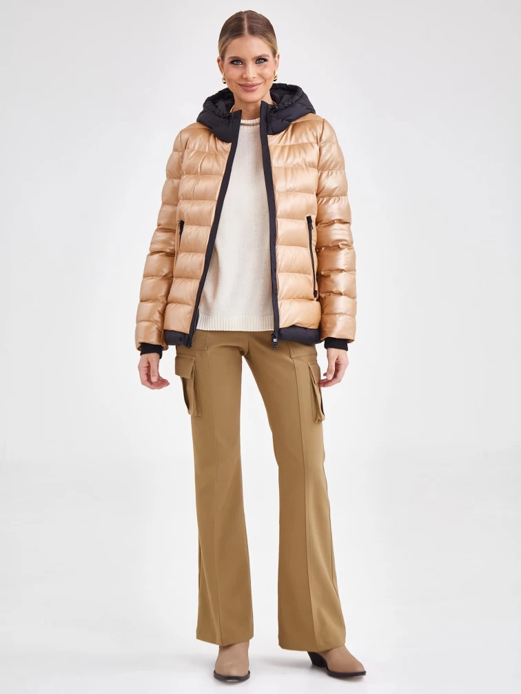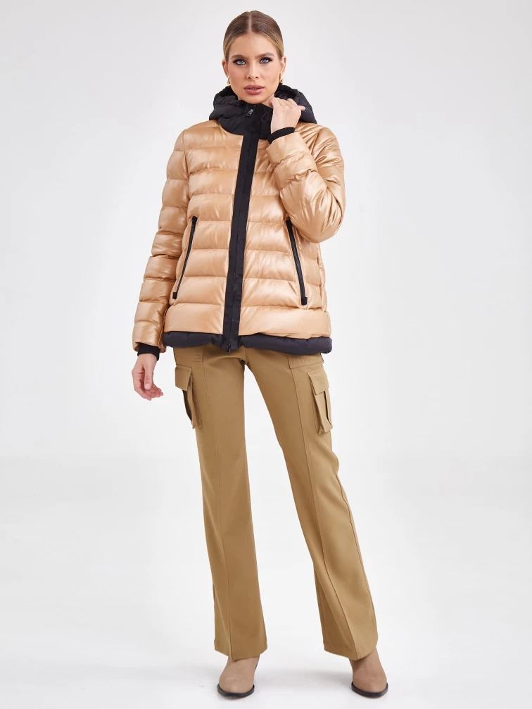 Товар короткий женский кожаный пуховик с капюшоном премиум класса 3028, бежевый, размер 44, артикул 25370 выполнен из натуральной кожи с застежкой молния. Рассчитан на сезон: демисезон. Длина изделия 51-74 см, силуэт свободный.