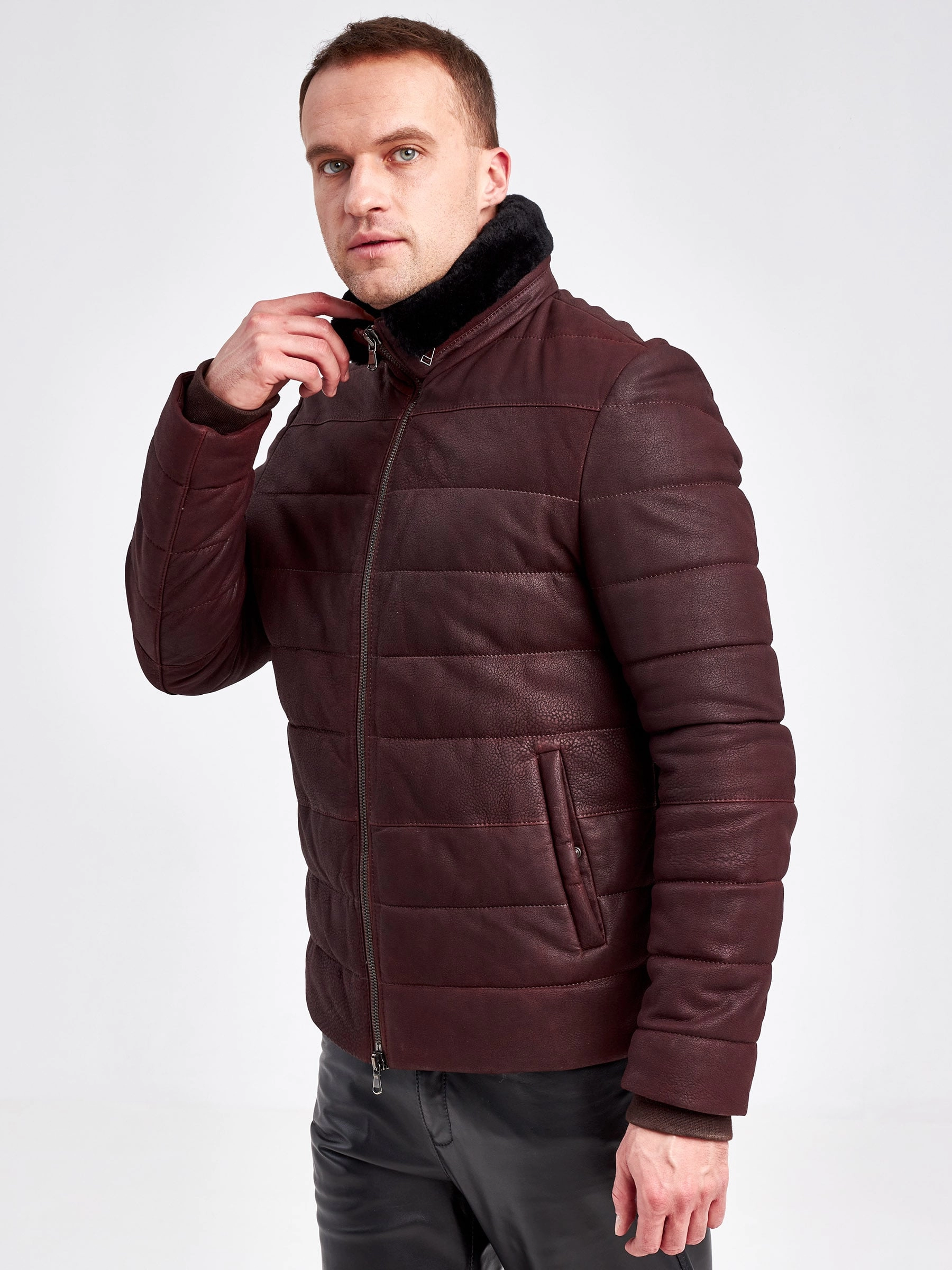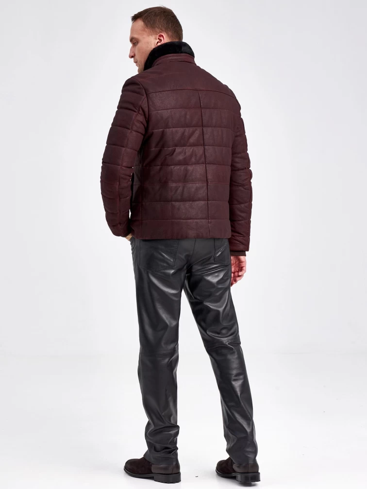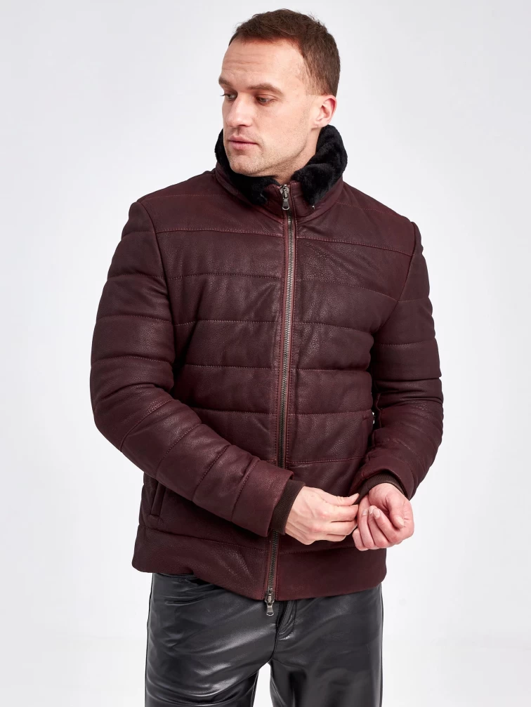 Кожаный пуховик зимний мужской 4678, короткий, бордовый, размер 50, артикул 23120