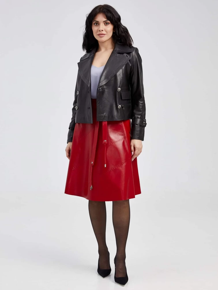 Товар красная кожаная юбка 01рс, размер 52, артикул 85142 выполнен из натуральной кожи с застежкой молния. Рассчитан на сезон: демисезон. Длина изделия 70 см, силуэт расклешенный.