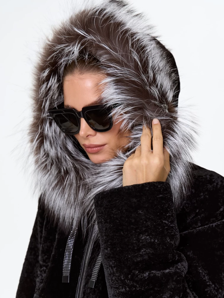 Дубленка из нежнейшего меха астрагана. Свободный крой. Глубокий капюшон украшенный мехом песца- регулируется кулисками. Современный шерстяной утеплитель шерстепон (внешне напоминает пуховой платок). Качественная подкладка. Минимальный вес. Комфортная посадка по фигуре. Легкое и теплое изделие совершенно не сковывает движения.
