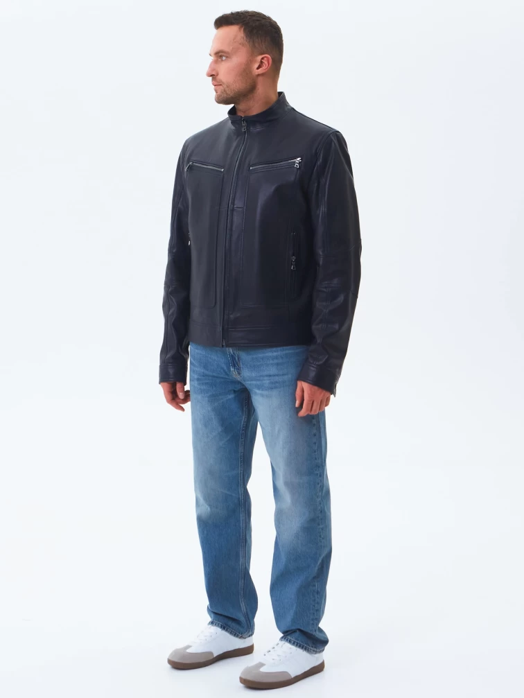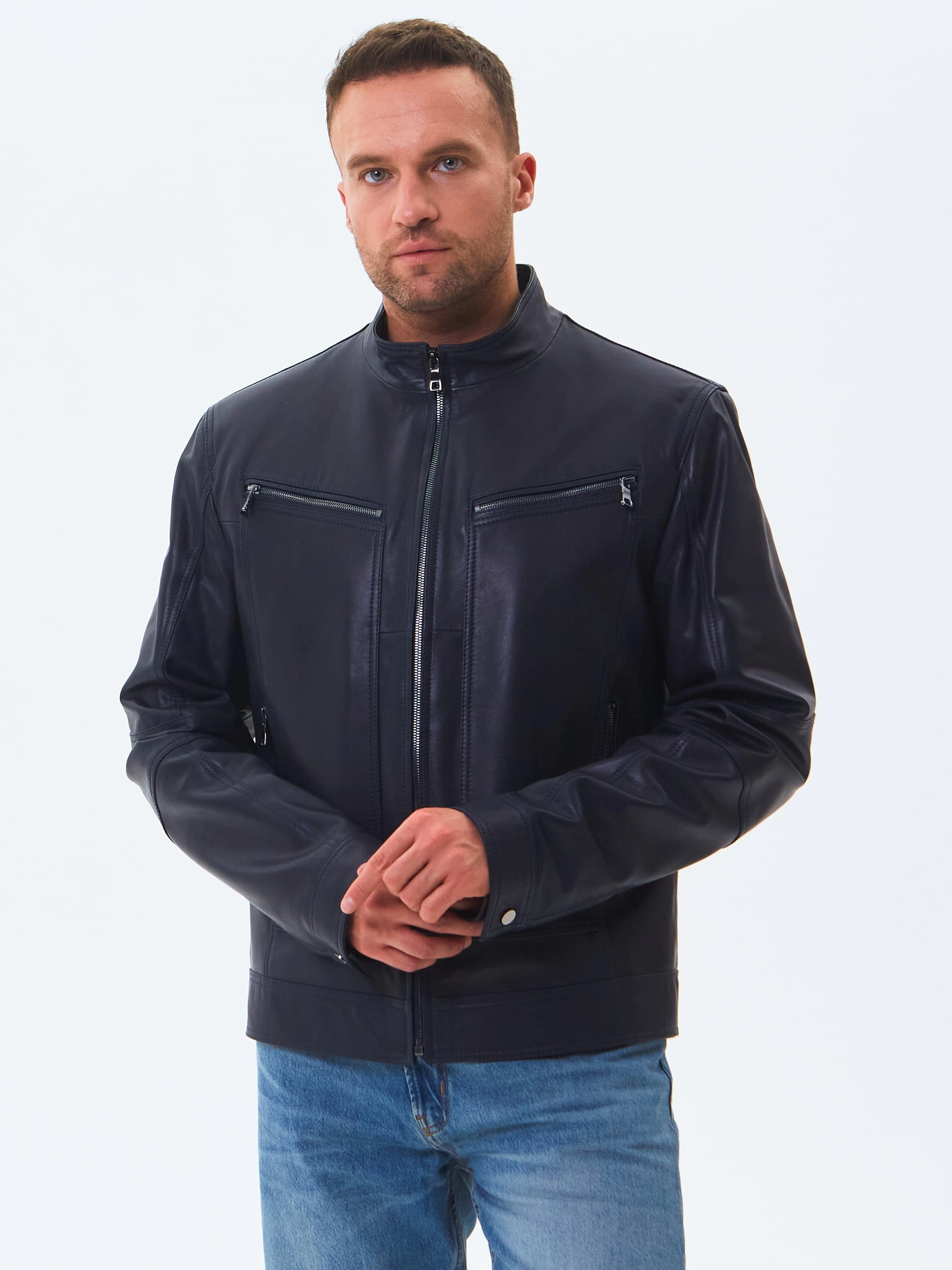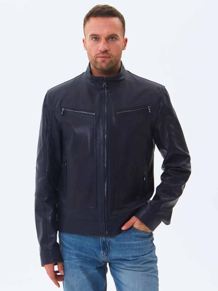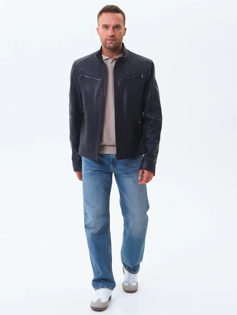 Кожаная куртка мужская 507, синяя, размер 50, артикул 28600