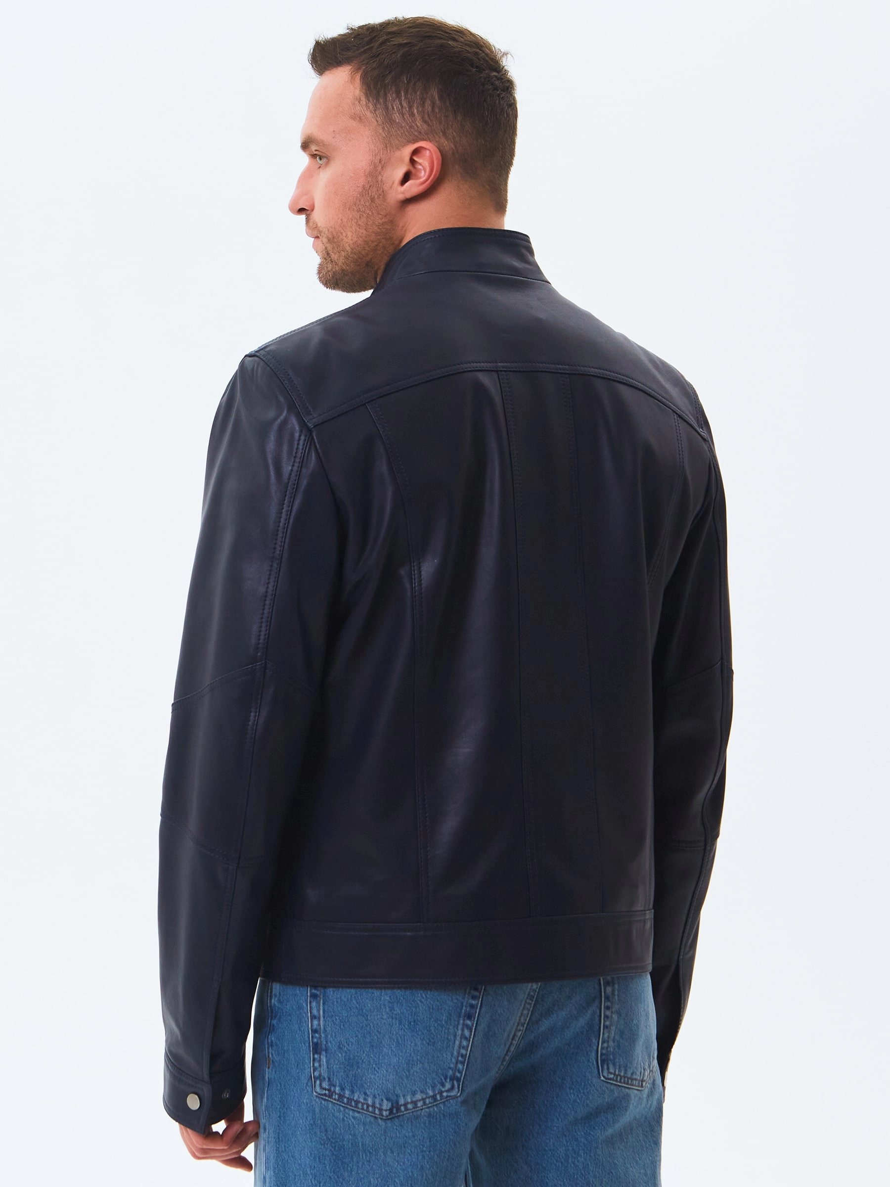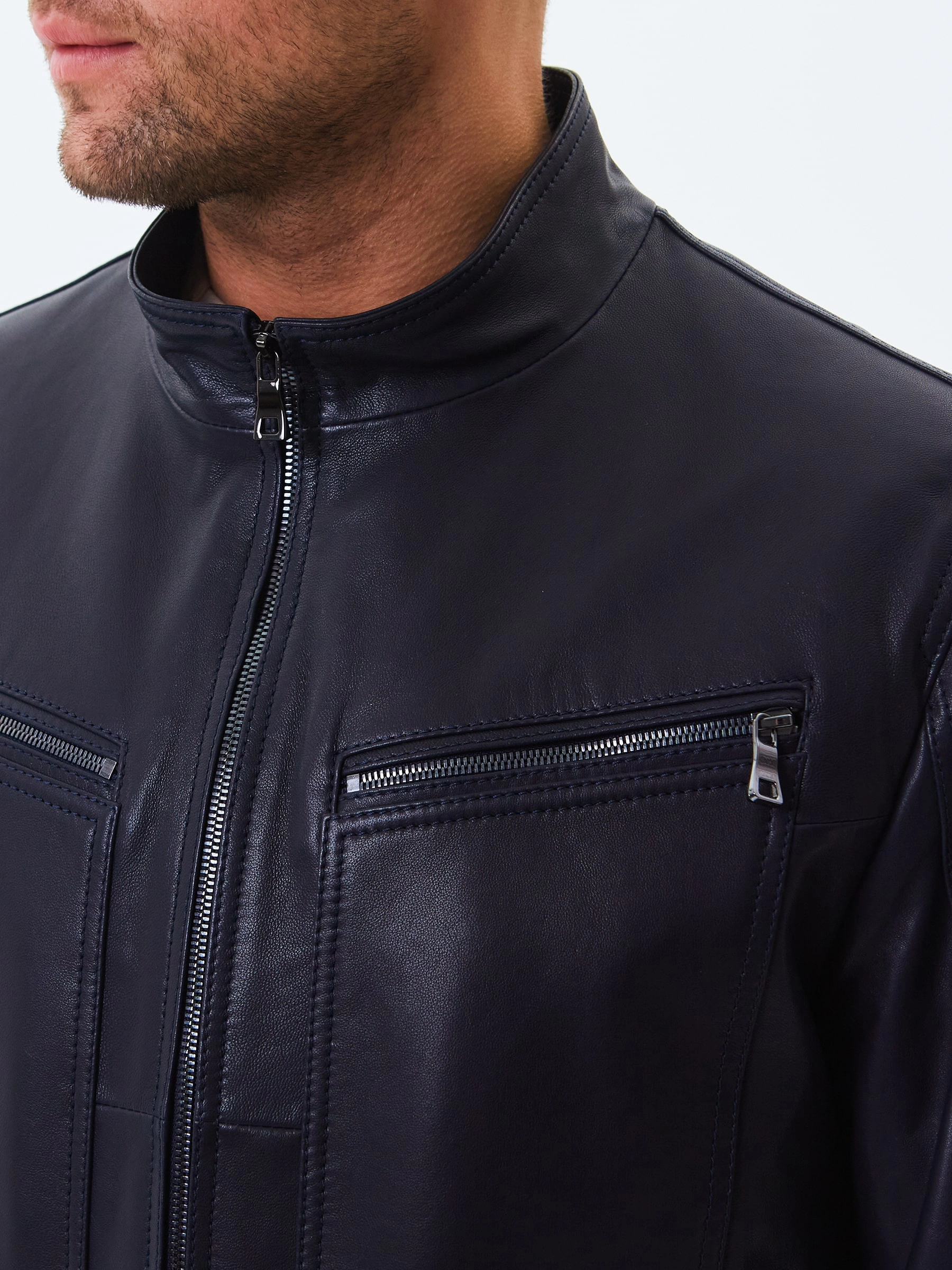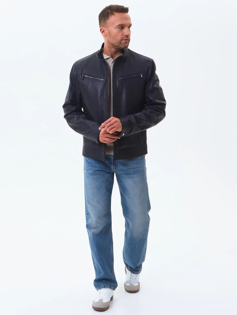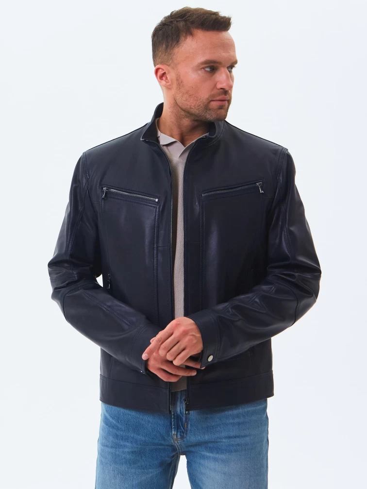 Кожаная куртка мужская 507, синяя, размер 50, артикул 28600