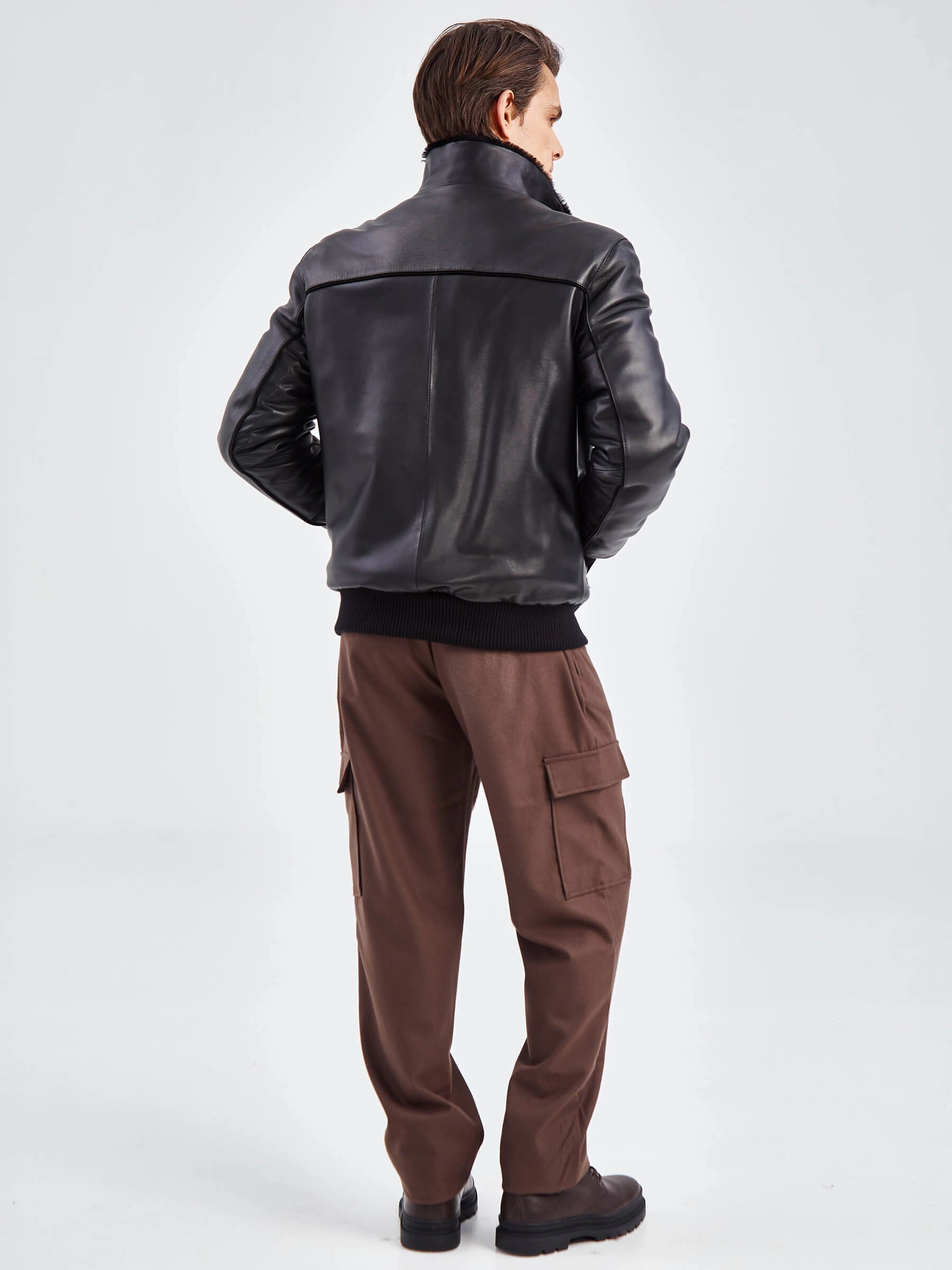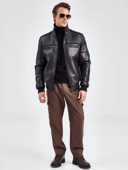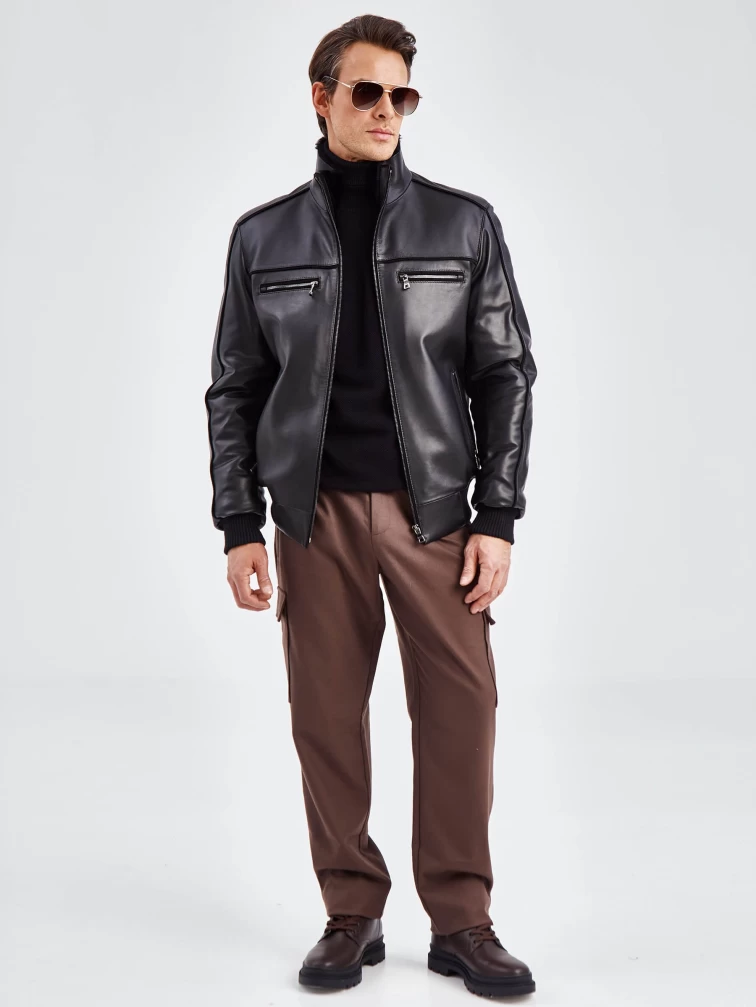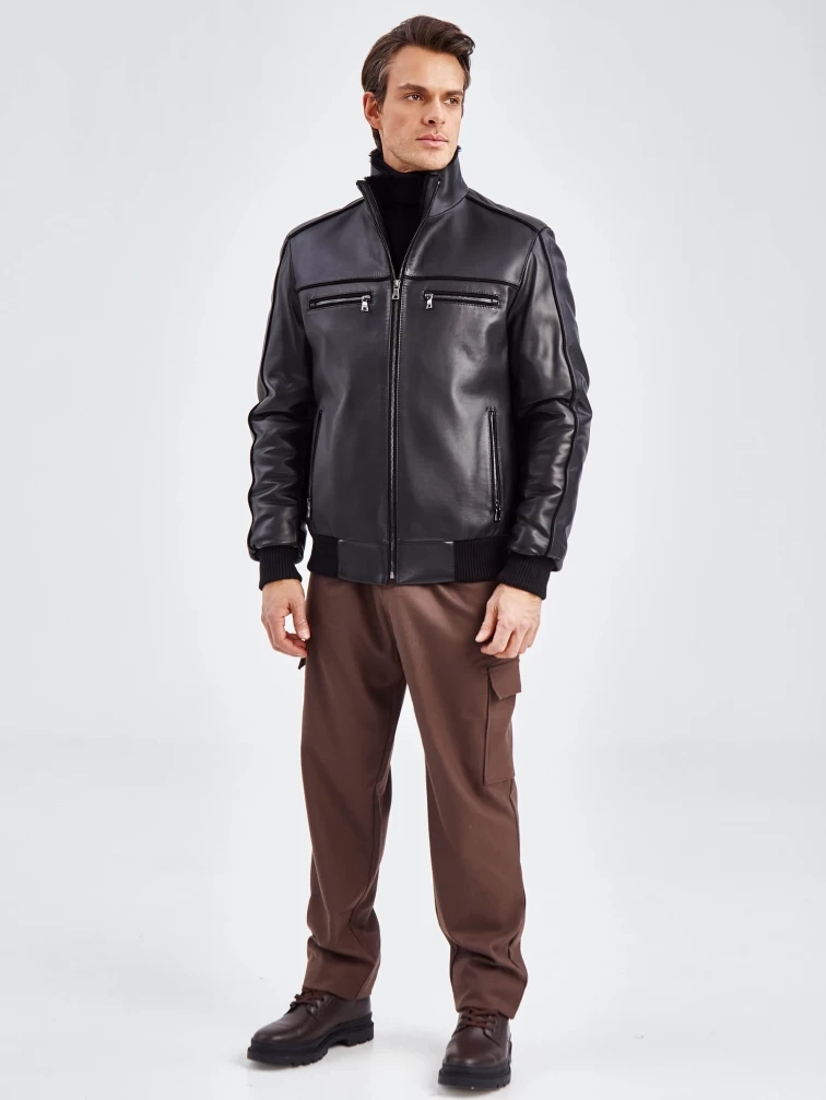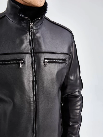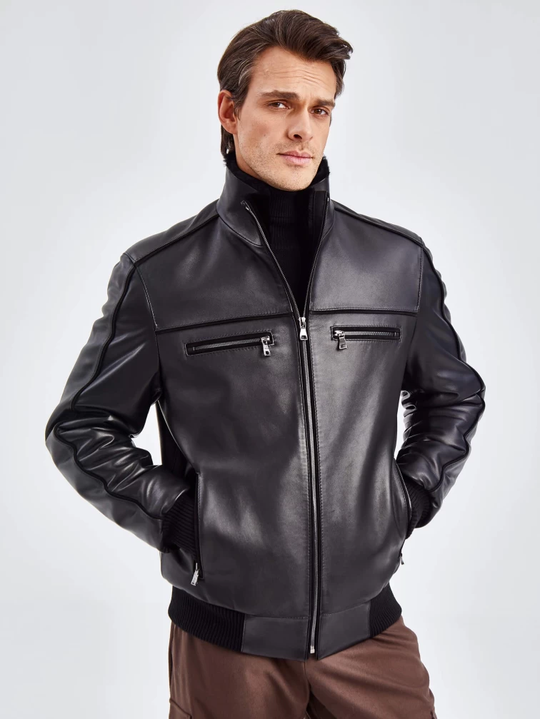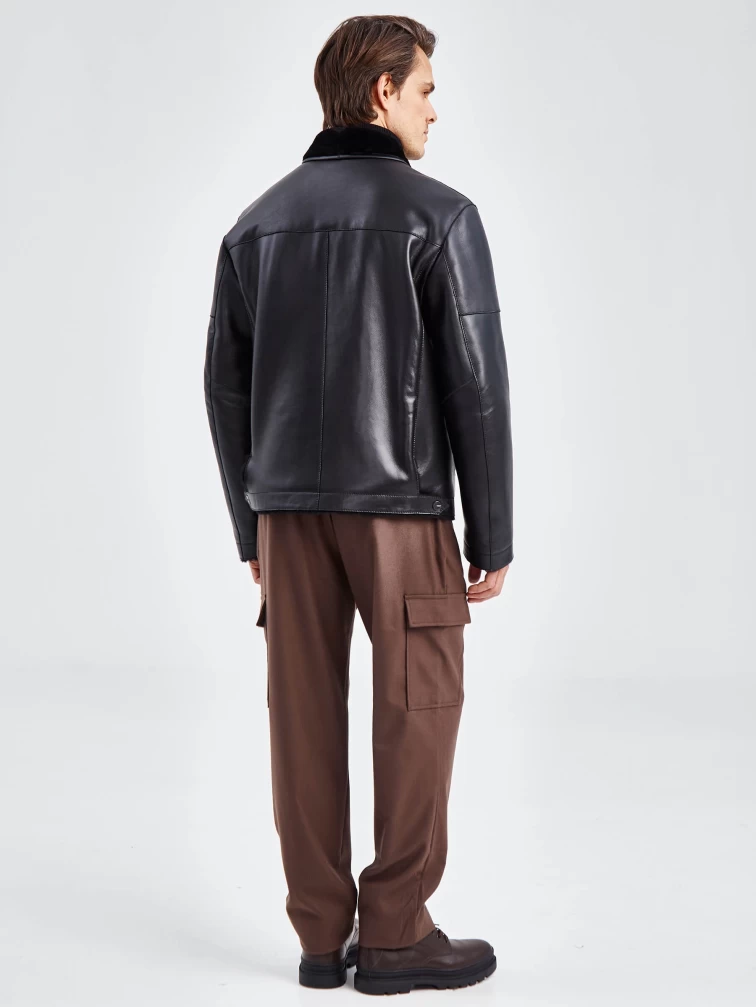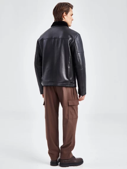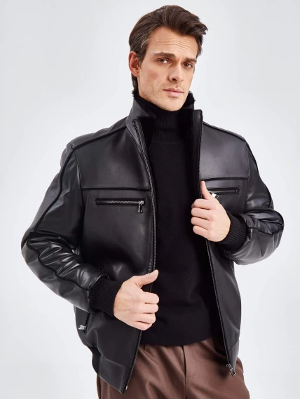 Короткая кожаная мужская дубленка бомбер 515, черная, размер 50, артикул 40261