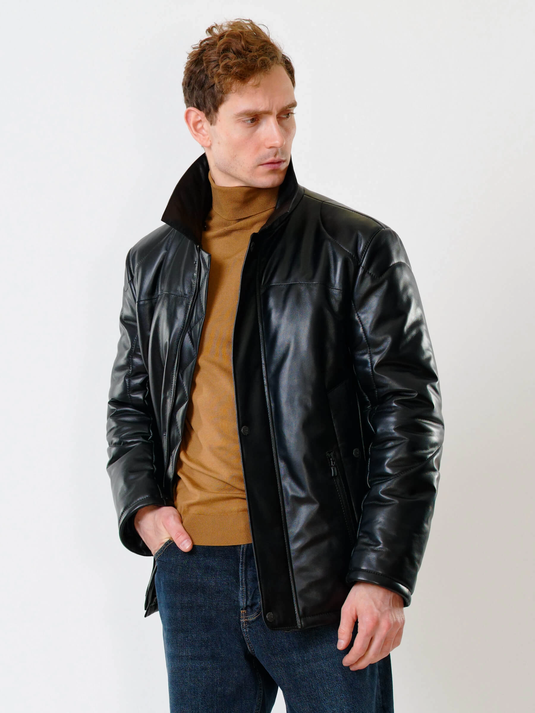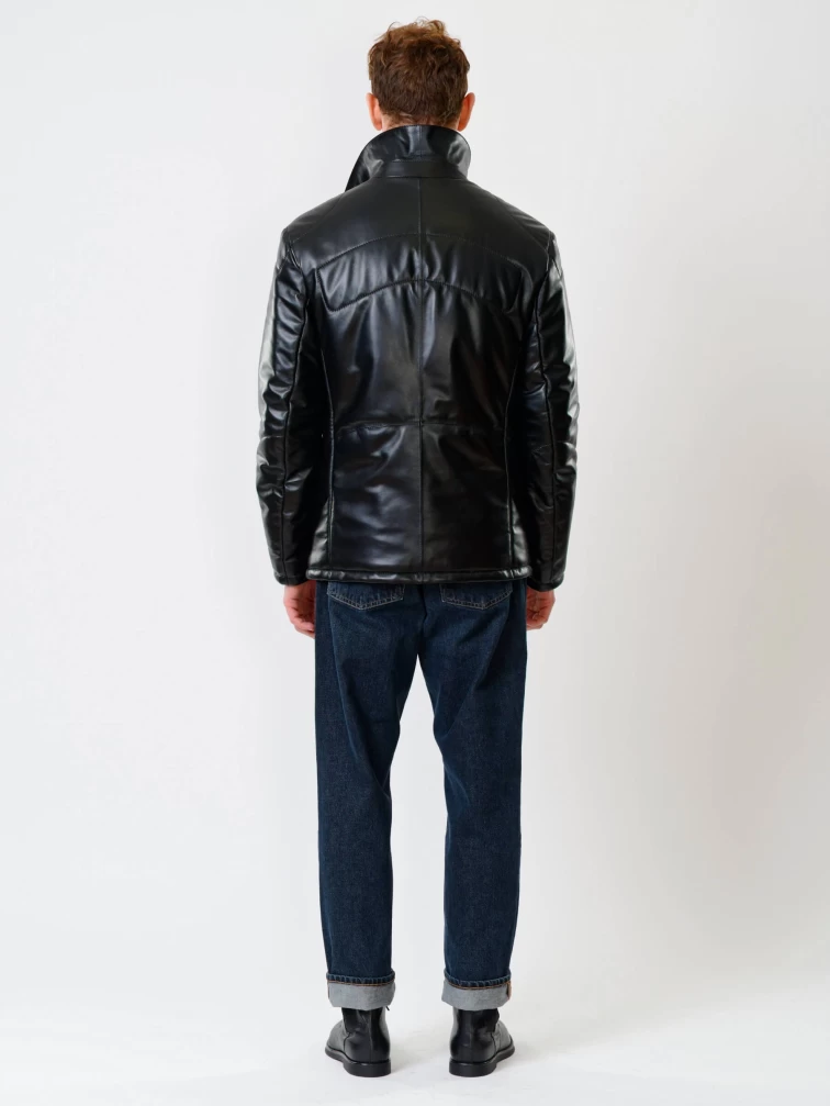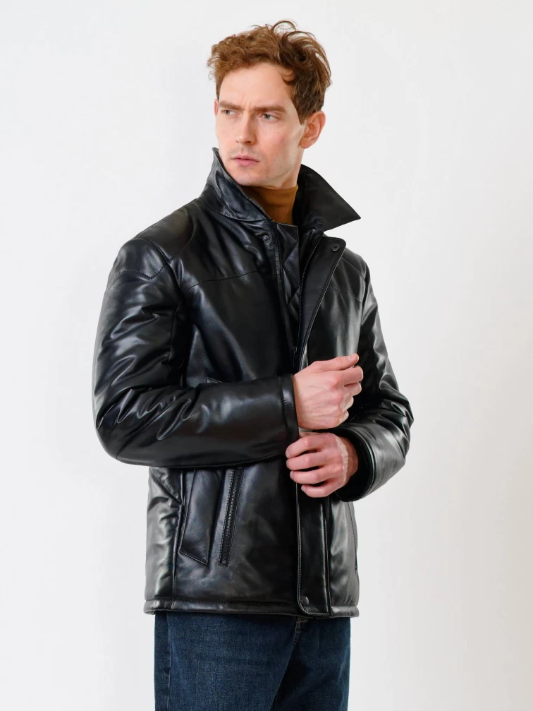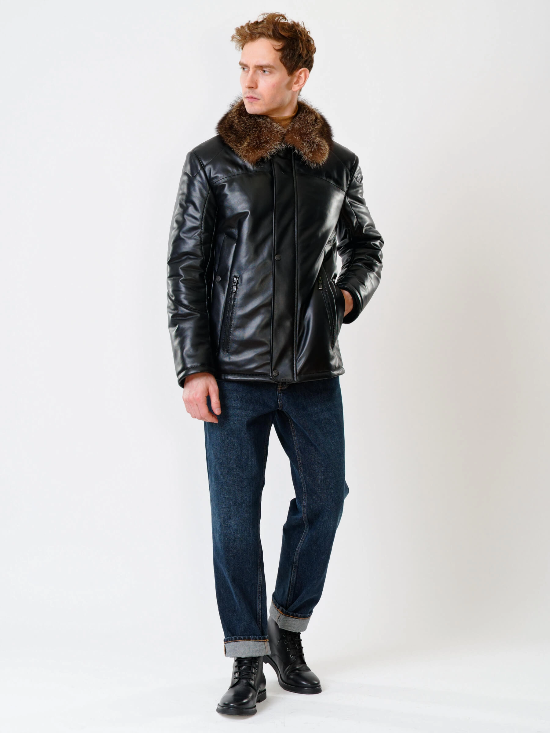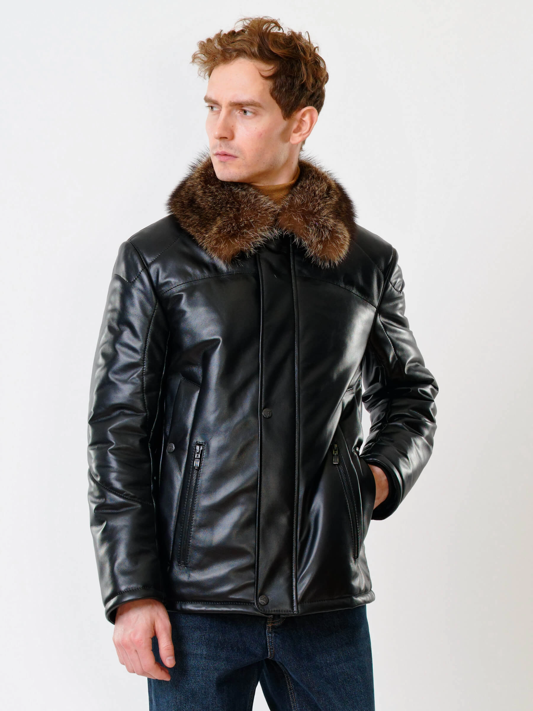 Товар мужской кожаный пуховик с воротником меха енота премиум класса джастин, черный, размер 48, артикул 40230 выполнен из натуральной кожи с застежкой молния. Рассчитан на сезон: осень-зима. Длина изделия 74 см, силуэт полуприлегающий.