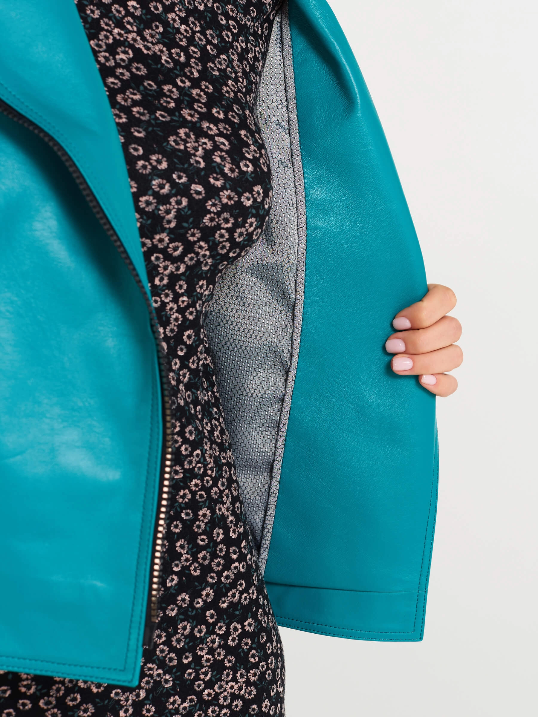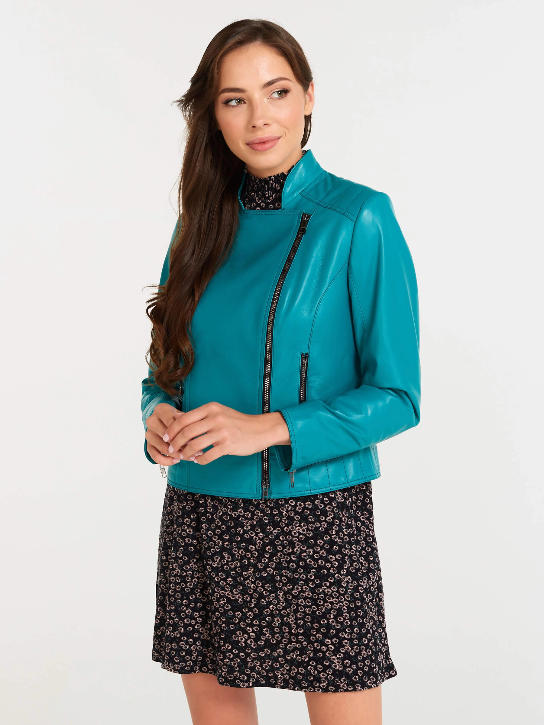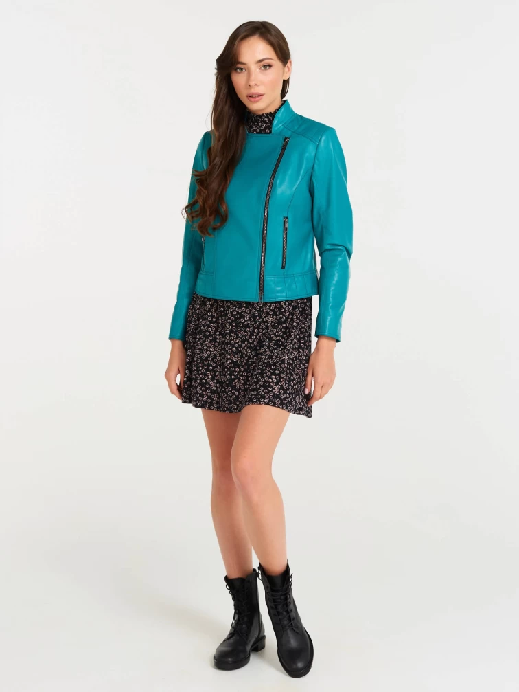 Кожаная куртка косуха женская 300, бирюзовая, размер 46, артикул 18790