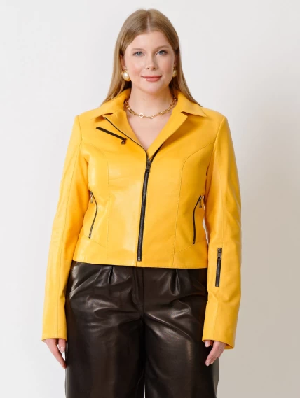Женская кожаная куртка косуха 3005, желтая, размер 48, артикул 91162