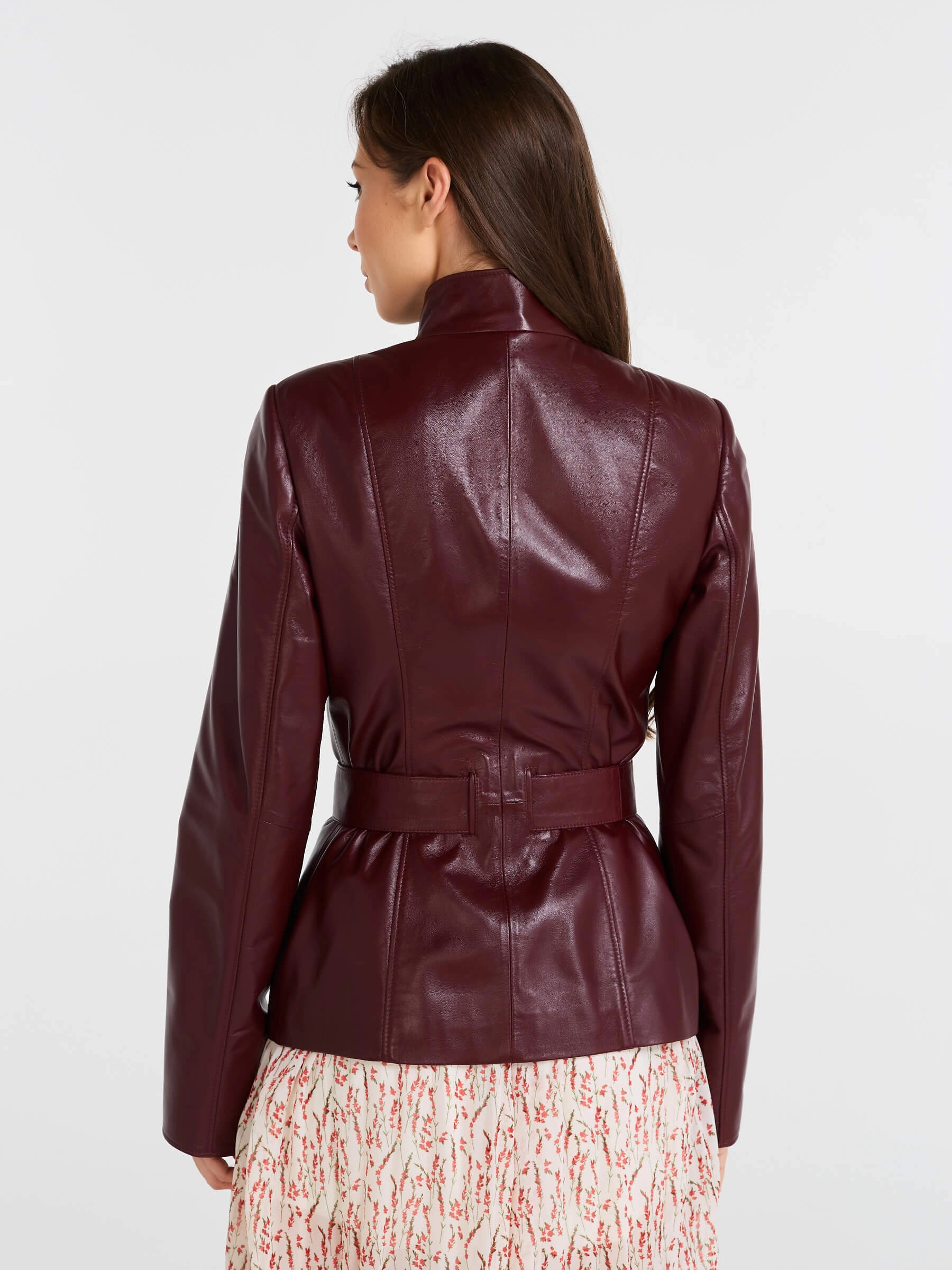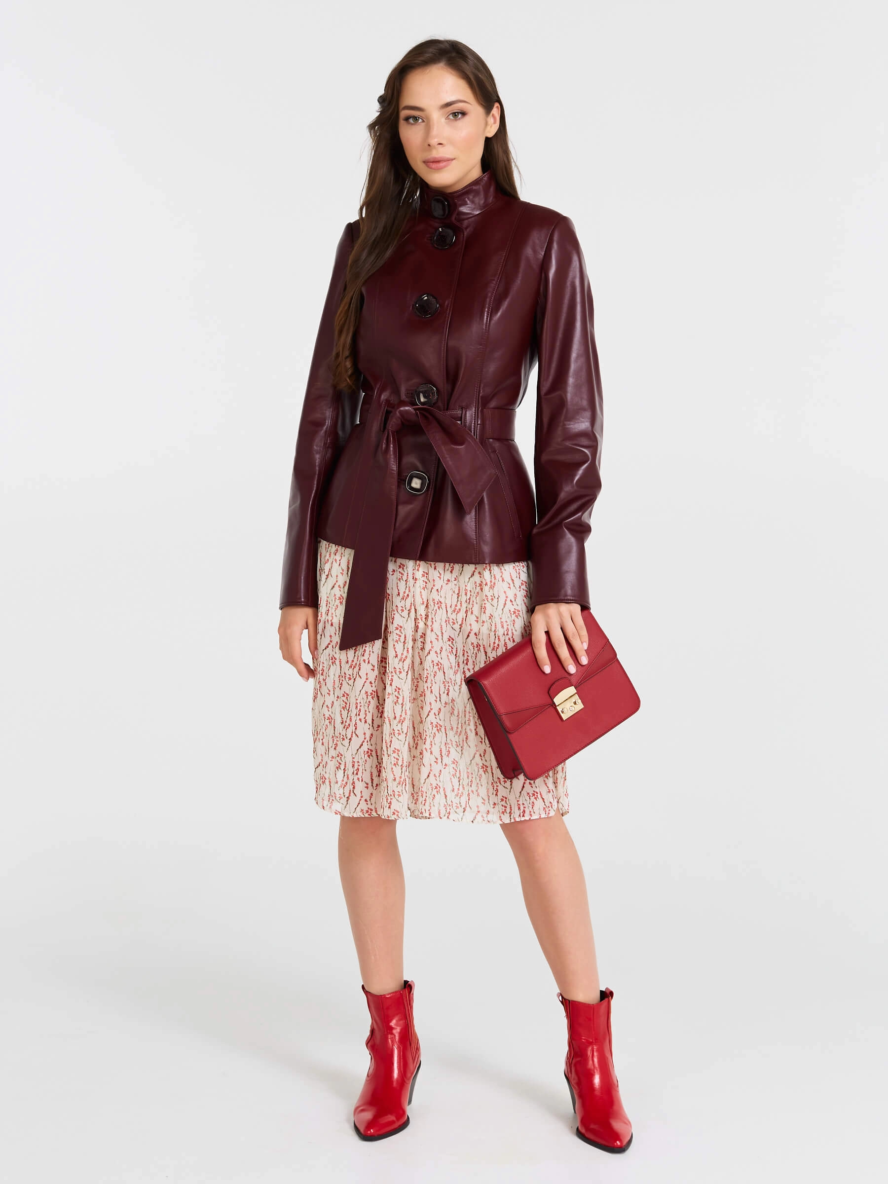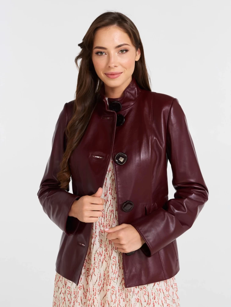 Товар кожаная женская куртка с поясом 334, бордовая, размер 56, артикул 90521 выполнен из натуральной кожи с застежкой пуговицы. Рассчитан на сезон: весна-лето. Длина изделия 66 см, силуэт приталенный .