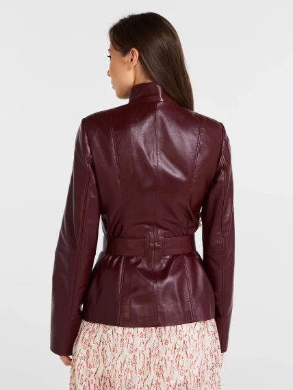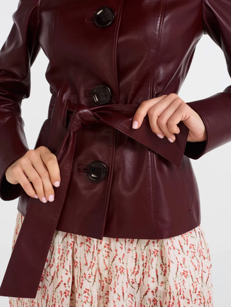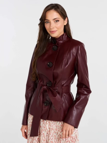 Кожаная женская куртка с поясом 334, бордовая, размер 56, артикул 90521
