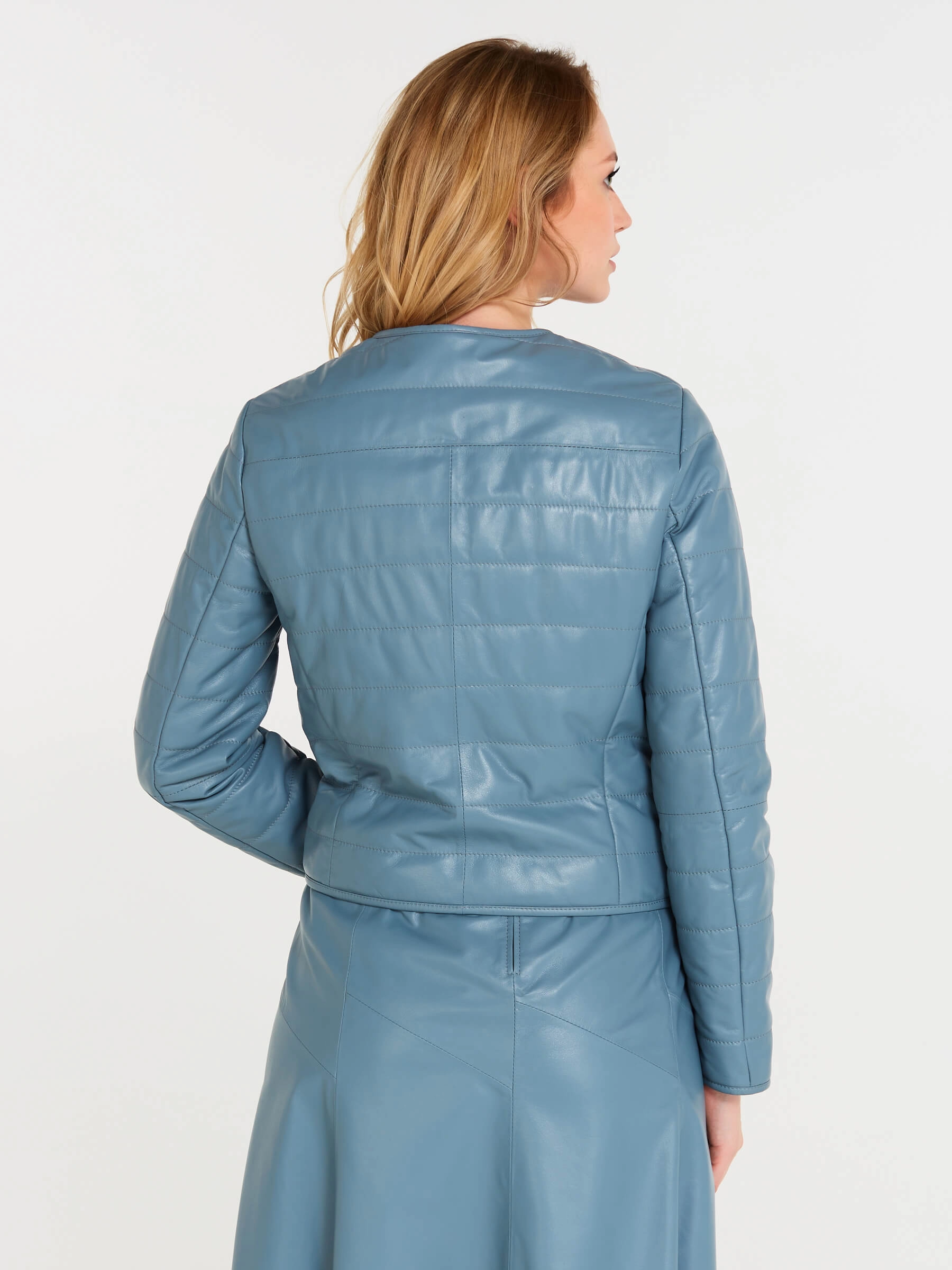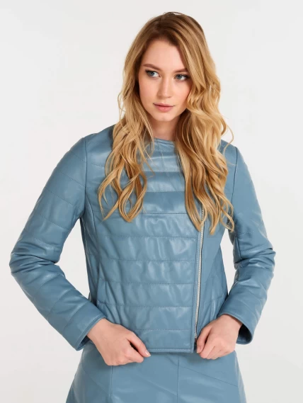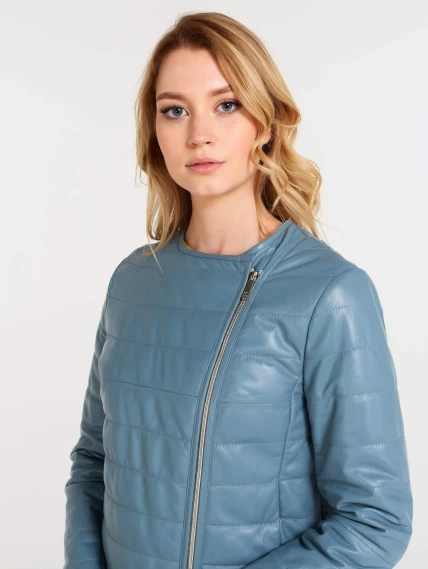 Утепленная кожаная женская косуха без воротника 306, голубая, размер 46, артикул 23610