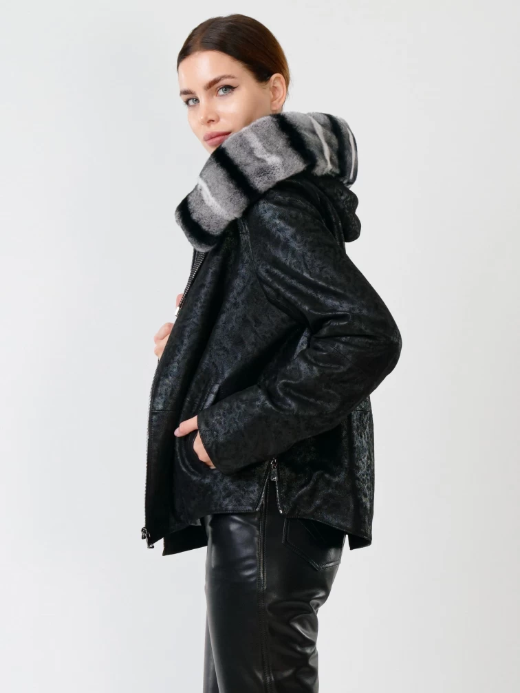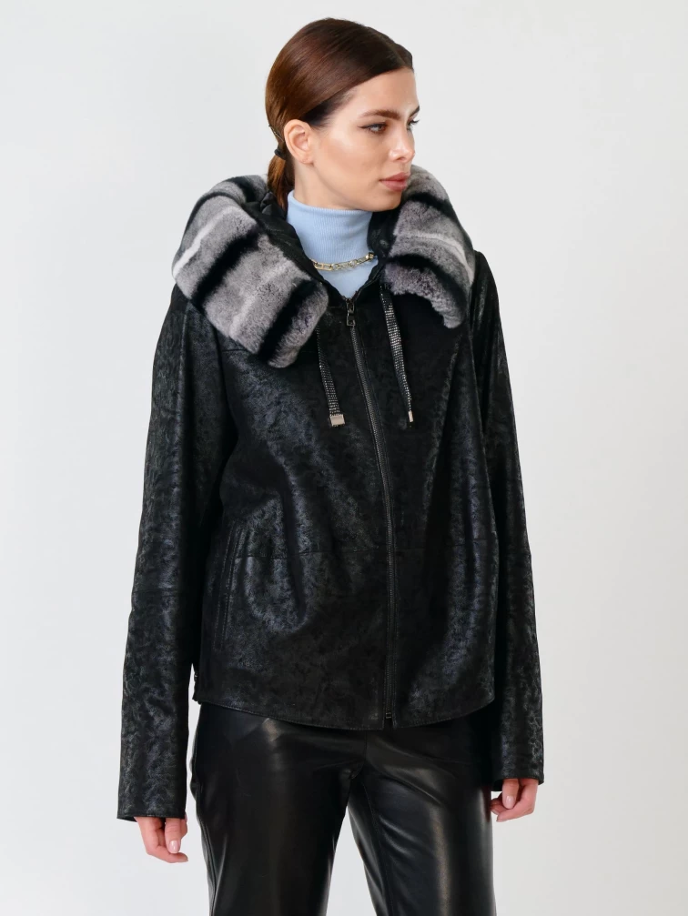 Товар короткая замшевая утепленная женская куртка с мехом "рекса" 308ш, черная, размер 46, артикул 90722 выполнен из натуральной замши с застежкой молния. Рассчитан на сезон: демисезон. Длина изделия 63 см, силуэт свободный.