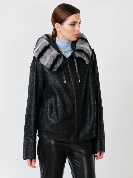 Короткая замшевая утепленная женская куртка с мехом "рекса" 308ш, черная, размер 46, артикул 90722