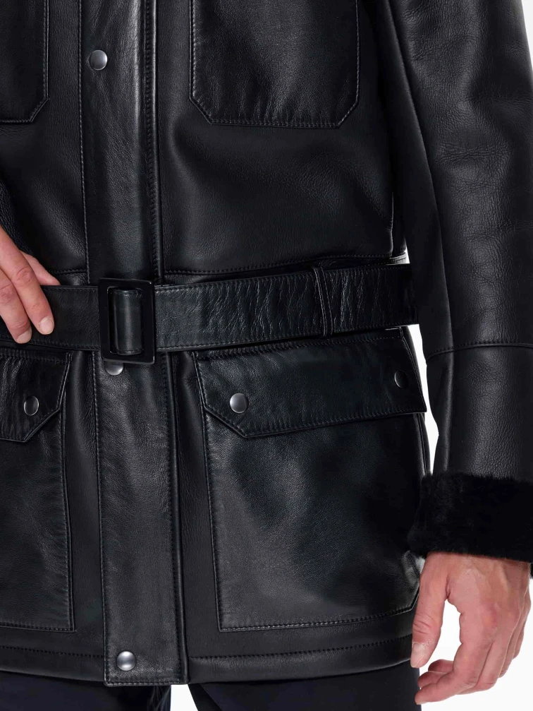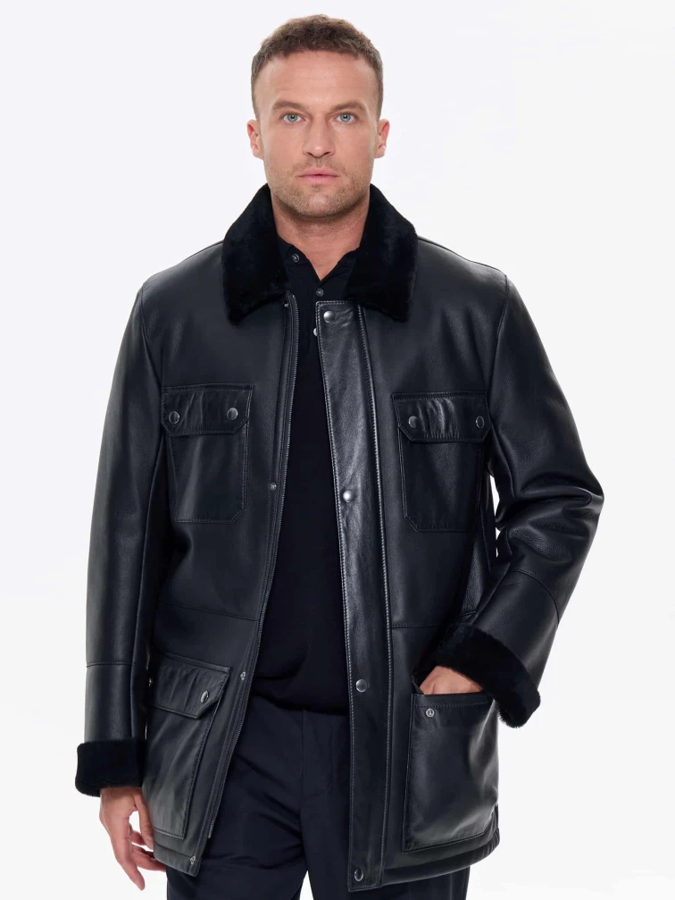 Молодежная мужская дубленка премиум класса 440, черная, размер 48, артикул 41220