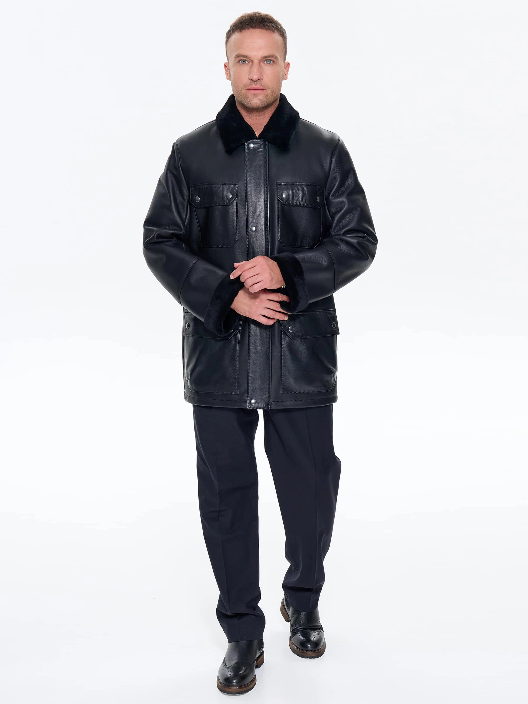 Товар молодежная мужская дубленка премиум класса 440, черная, размер 48, артикул 41220 выполнен из овчина "мерино" с застежкой молния+кнопки. Рассчитан на сезон: зима. Длина изделия 81 см, силуэт прямой.