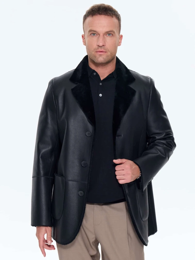 Мужская дубленка пиджак премиум класса 443, черная, размер 48, артикул 41210