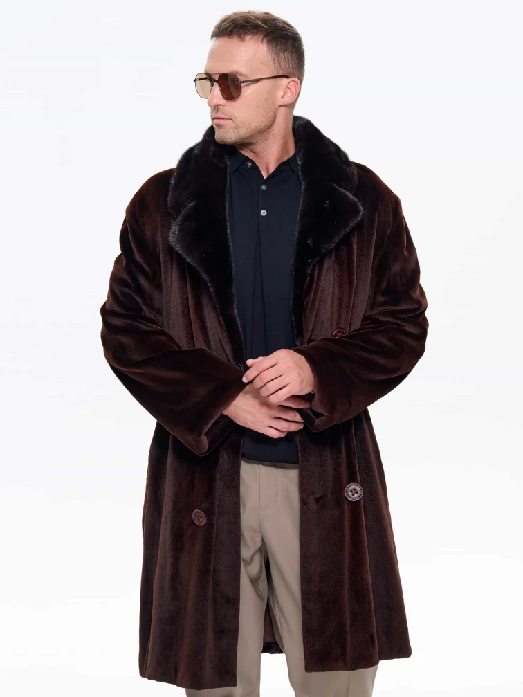Мужская двубортная норковая шуба CADANO F086389A, коричневая, размер 56, артикул 34540