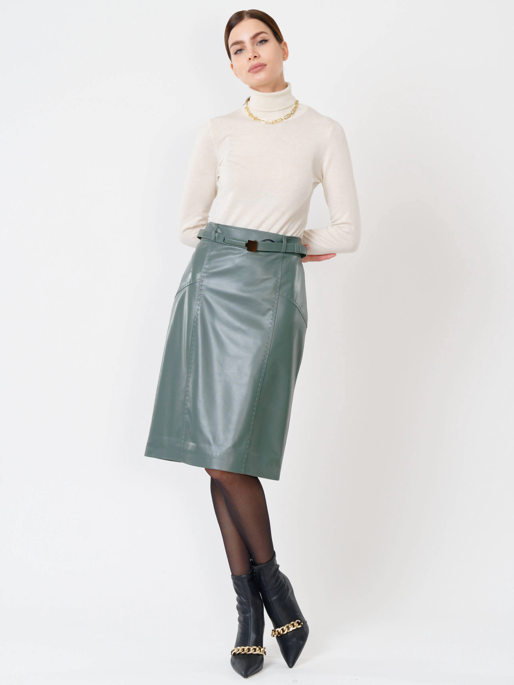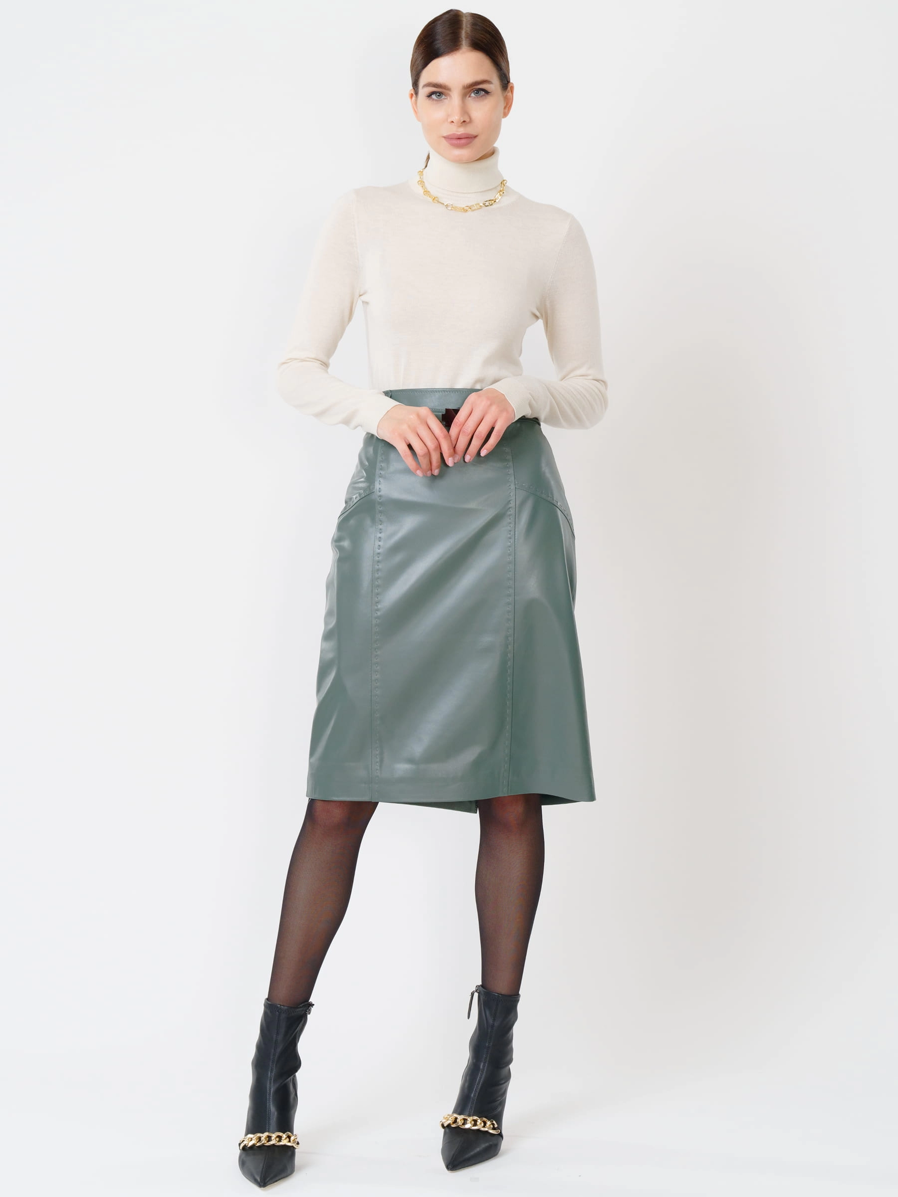 Оливковая кожаная юбка карандаш 02рс, размер 46, артикул 85471