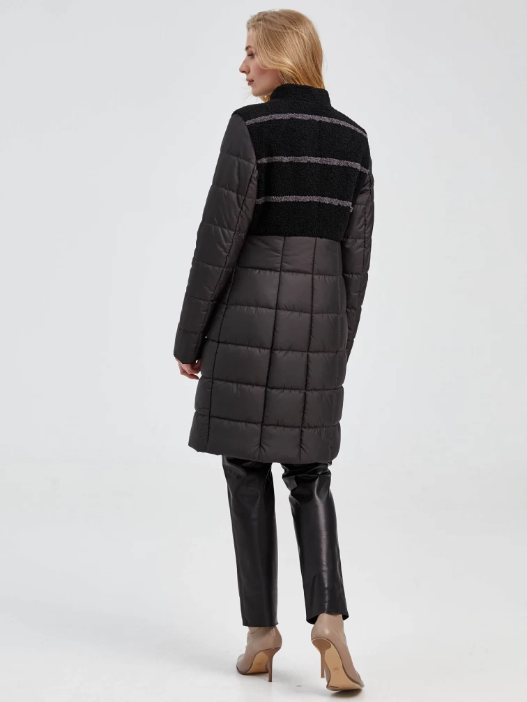 Утепленное полупальто комбинированное полиэстер с астраганом. Полуприлегающий силуэт. Рукав-втачной. Изделие застегивается на двухзамковую молнию. По бокам расположены карманы с застежками. Наполнитель-синтепон. Полупальто прекрасно сохраняет тепло, не боится влаги.