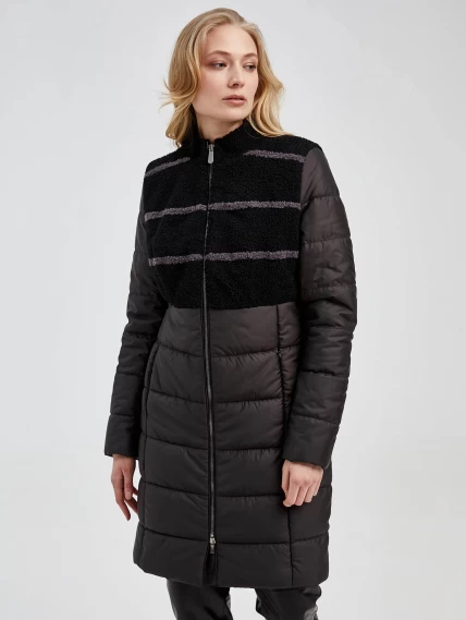 Текстильный женский пуховик с мехом астрагана 805, черный, размер 40, артикул 13400