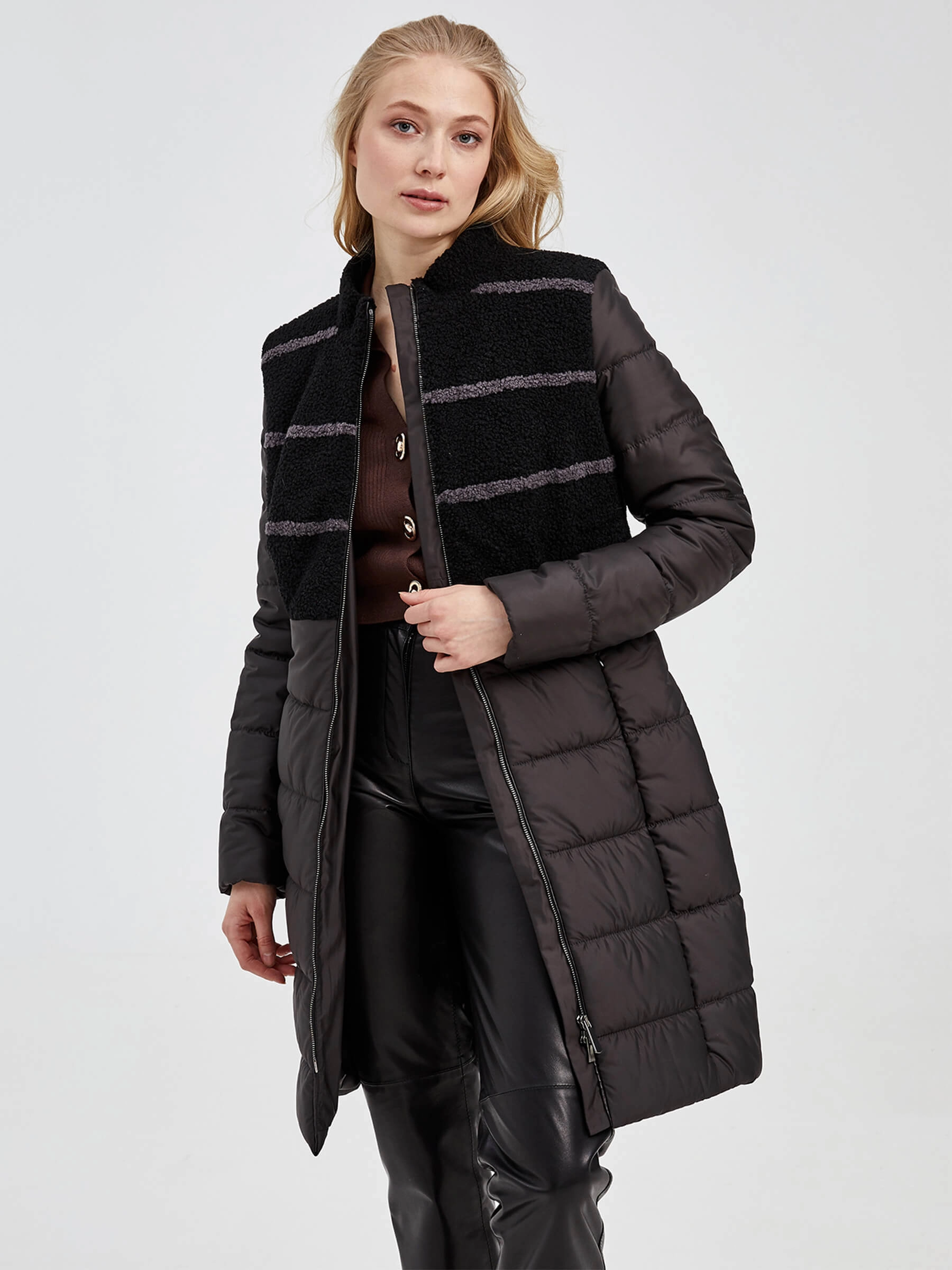 Товар текстильный женский пуховик с мехом астрагана 805, черный, размер 40, артикул 13400 выполнен из астраган с застежкой молния. Рассчитан на сезон: осень-зима. Длина изделия 75-90 см, силуэт полуприлегающий.