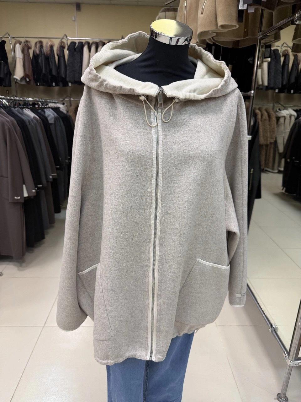 Товар полупальто кашемировое женское с капюшоном бежевое 1132-70, размер 48, артикул 92530.