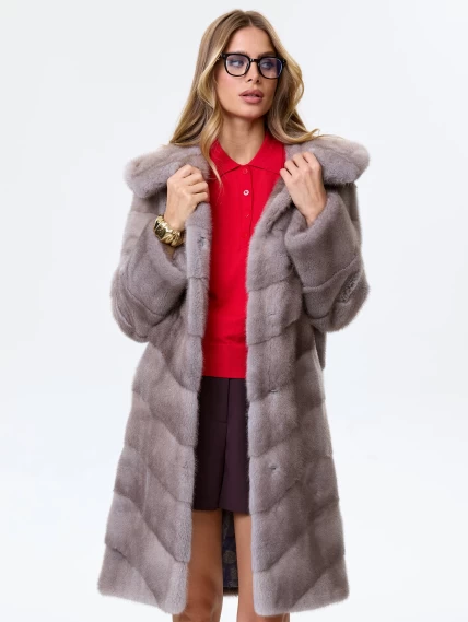 Полупальто с капюшоном из меха норки для женщин Галя(к), серо-голубое, размер 44, артикул 34100