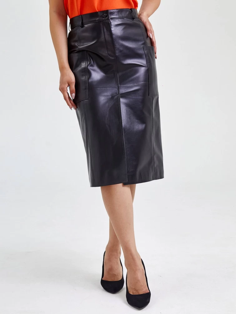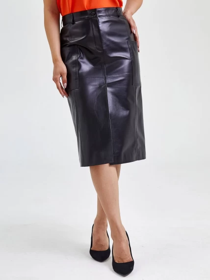 Классическая прямая юбка из натуральной кожи черного цвета длиной 76 см с завышенной посадкой идеально подчеркивает талию, создавая женственный силуэт. Мягкая кожа премиального качества с благородным матовым блеском обеспечивает комфорт в носке, а универсальный прямой крой позволяет создавать разнообразные образы — от строгих офисных с рубашками и лоферами до повседневных с объемными джемперами и кедами. Практичные детали: два накладных кармана и элегантный разрез спинке добавляют функциональности, сохраняя чистоту линий. Для вечернего выхода сочетайте с шелковым топом и лодочками — эта кожаная юбка станет идеальной основой гардероба, гарантируя безупречный вид благодаря долговечности натуральной кожи и ее способности сохранять форму в течение всего дня.