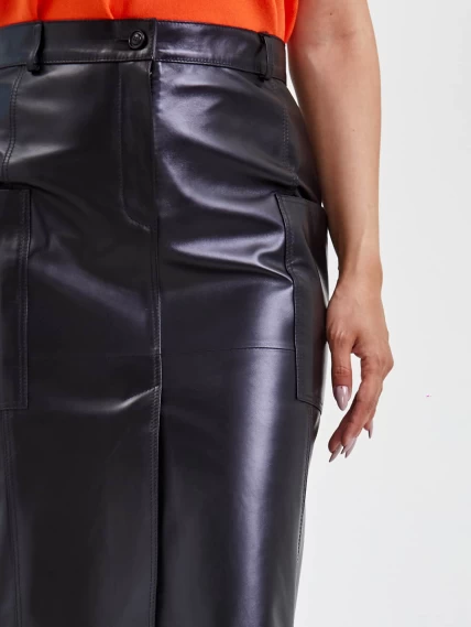 Кожаная юбка с разрезом 10, черная, размер 44, артикул 85580