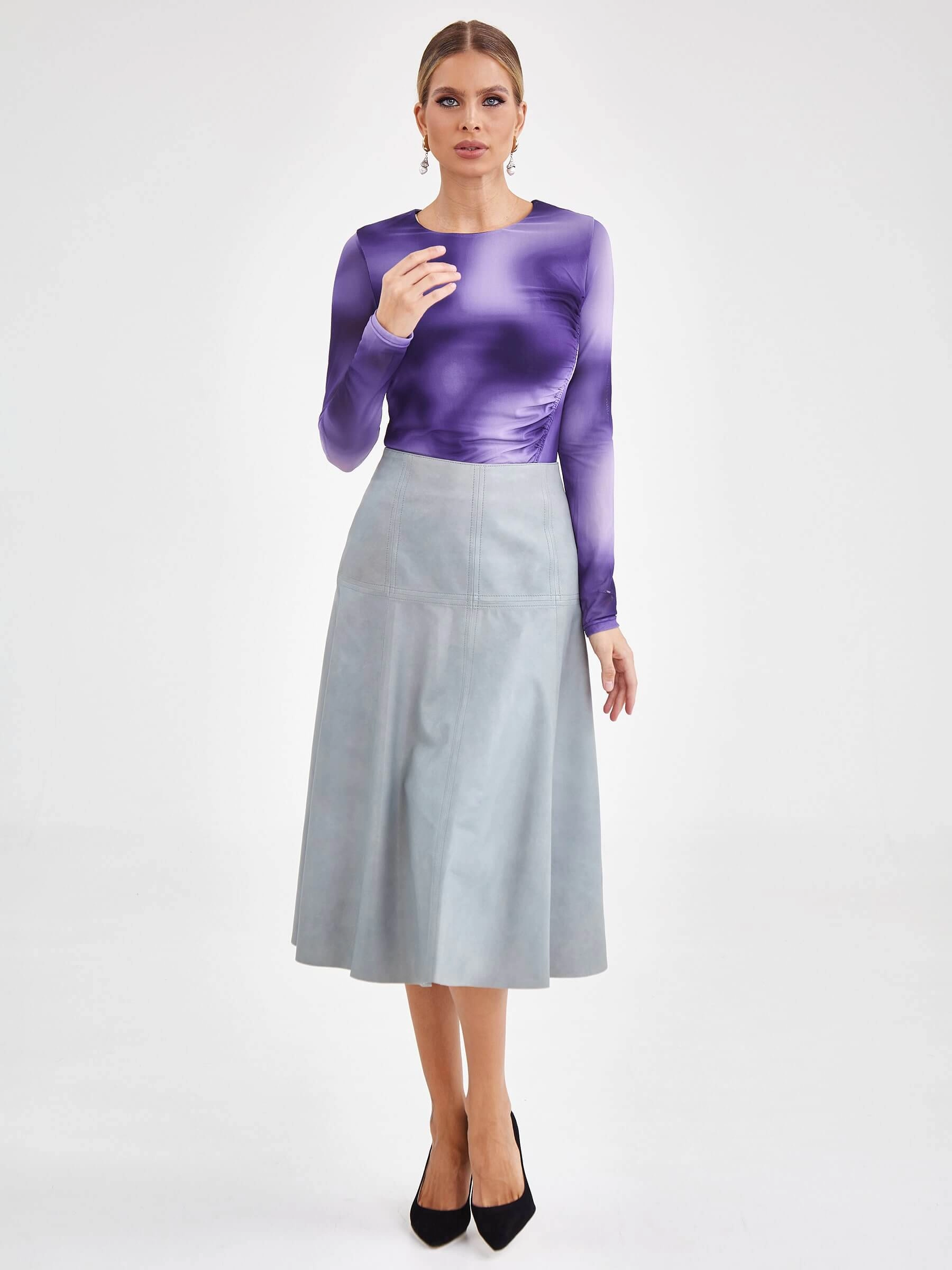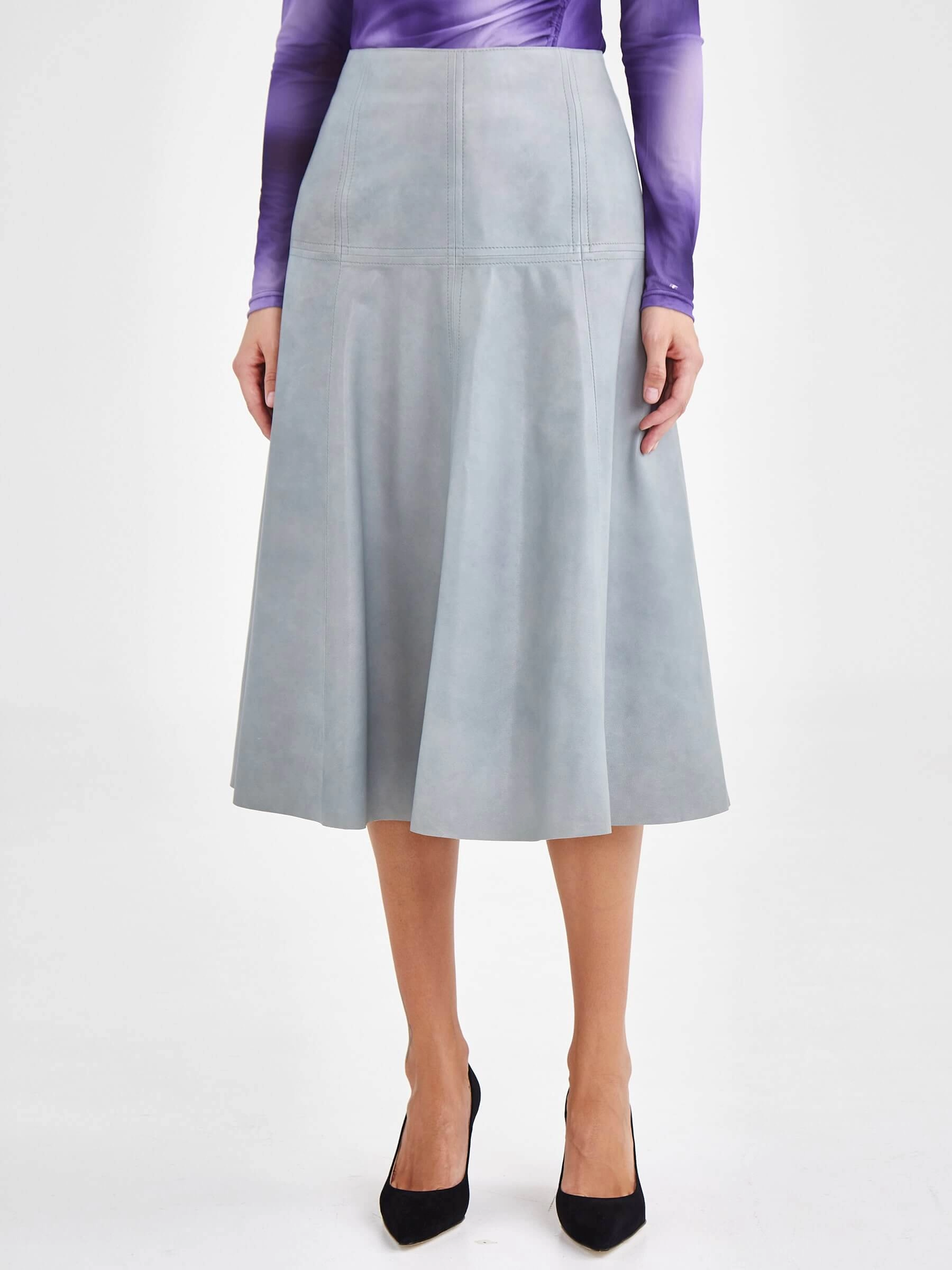 Кожаная юбка годе 14, серо-голубая, размер 46, артикул 85960