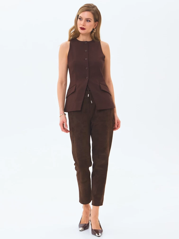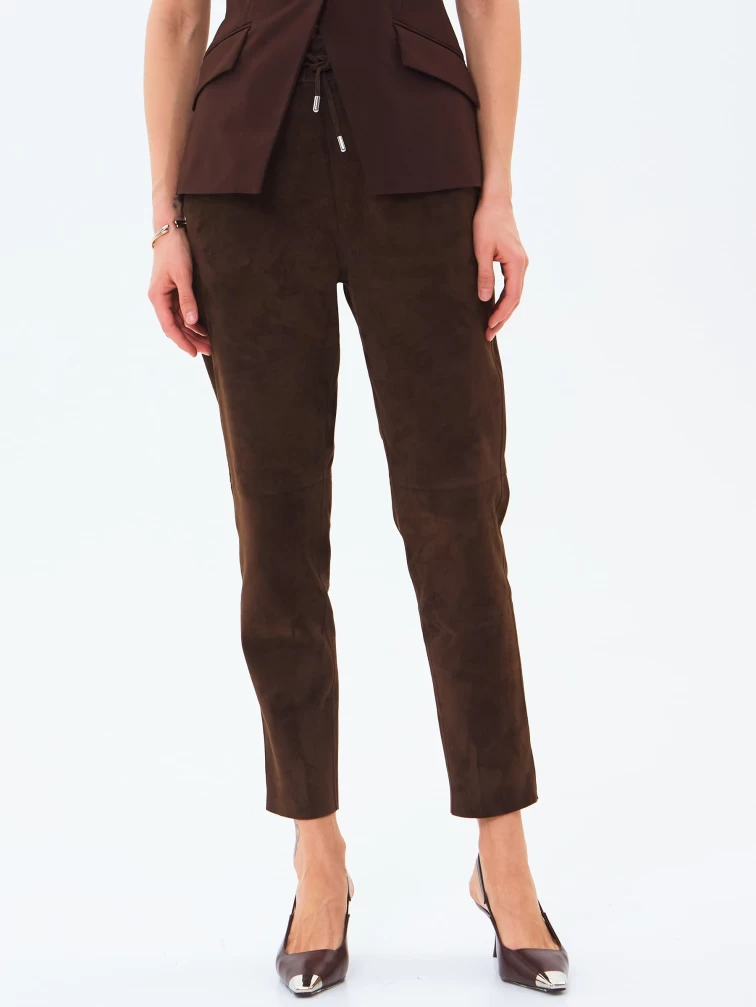 Замшевые женские брюки 09з, коричневые, размер 46, артикул 86030