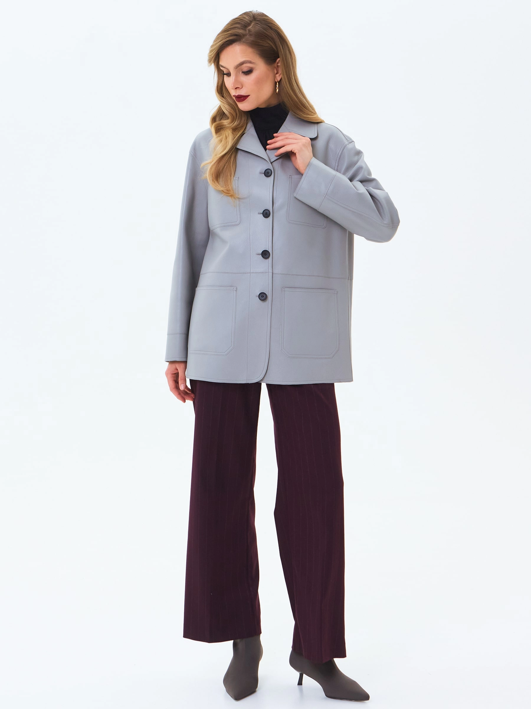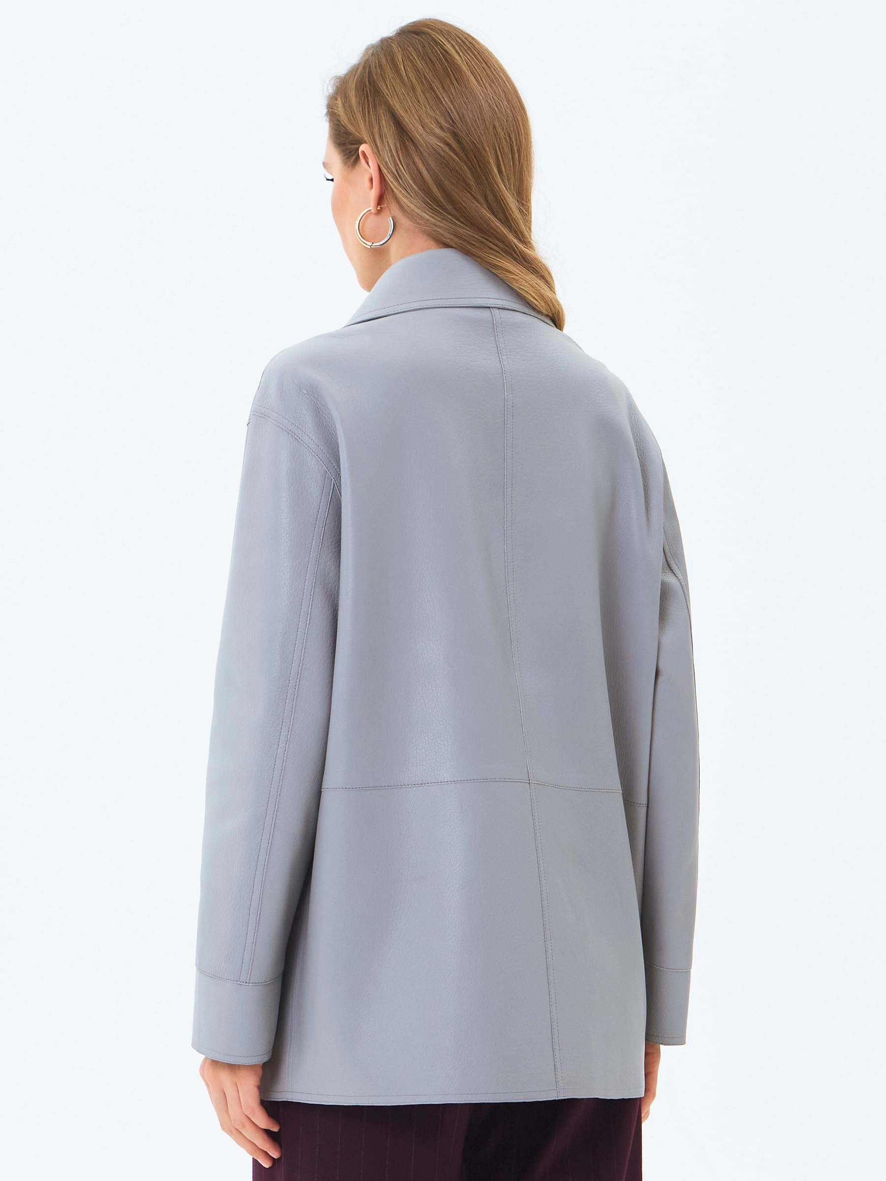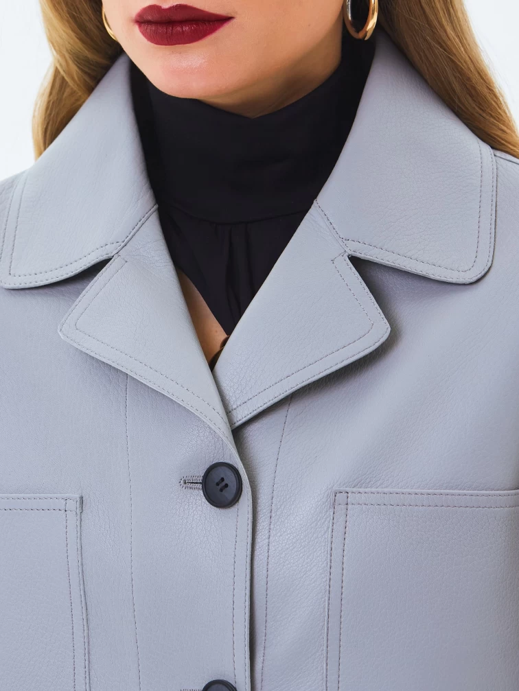 Серый женский кожаный пиджак премиум класса 3092, размер 46, артикул 24590