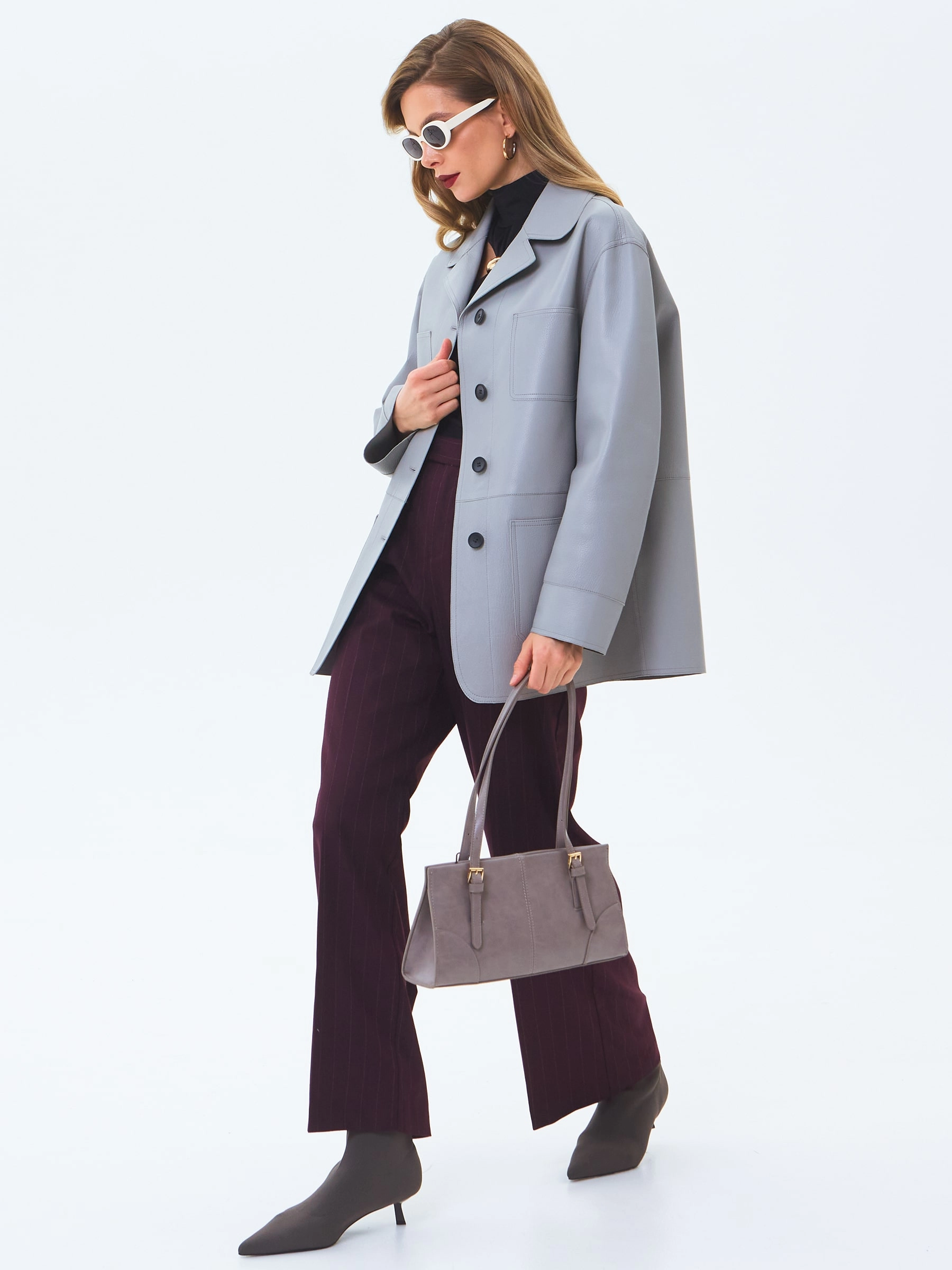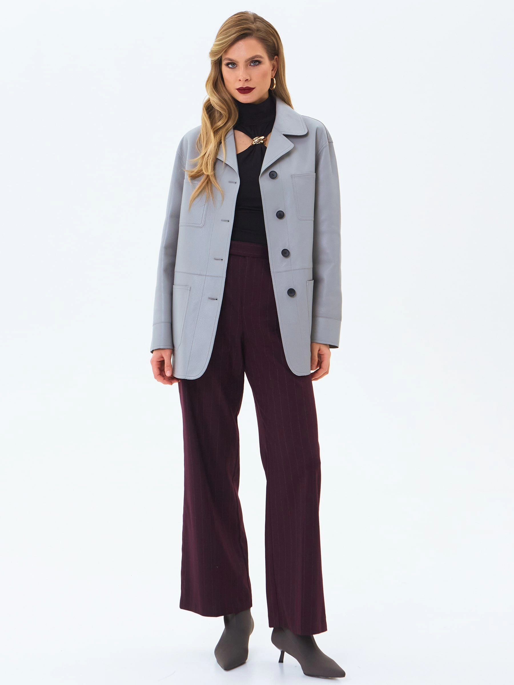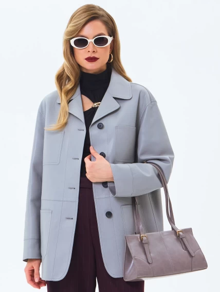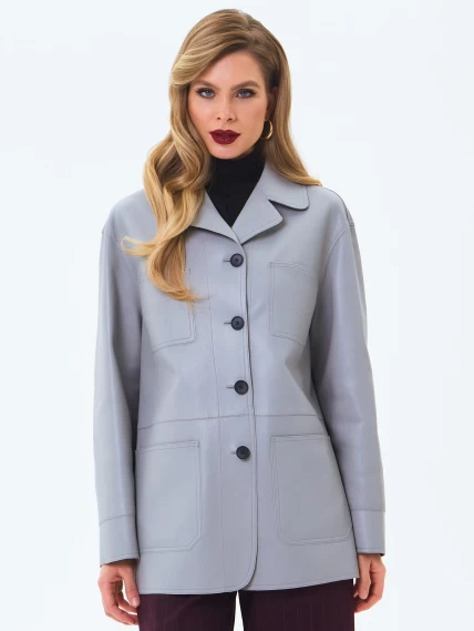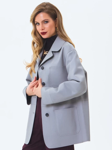 Серый женский кожаный пиджак премиум класса 3092, размер 46, артикул 24590