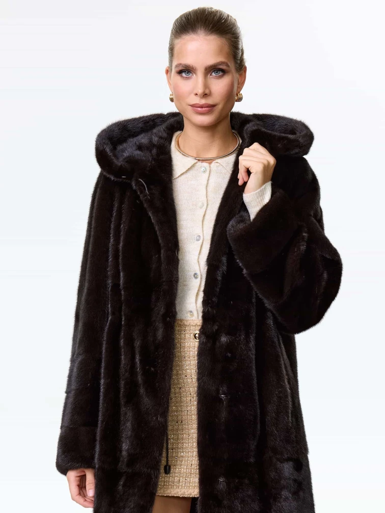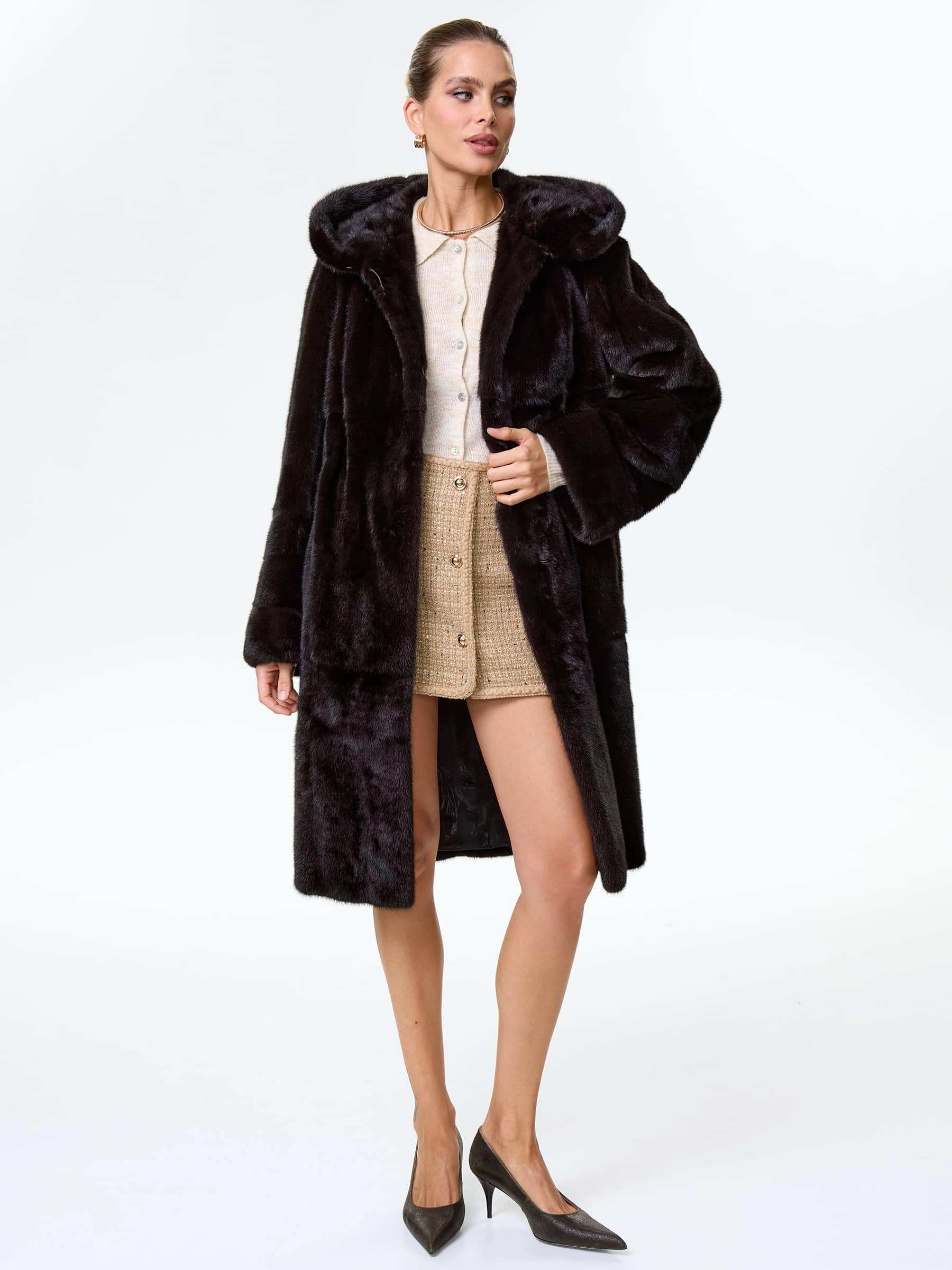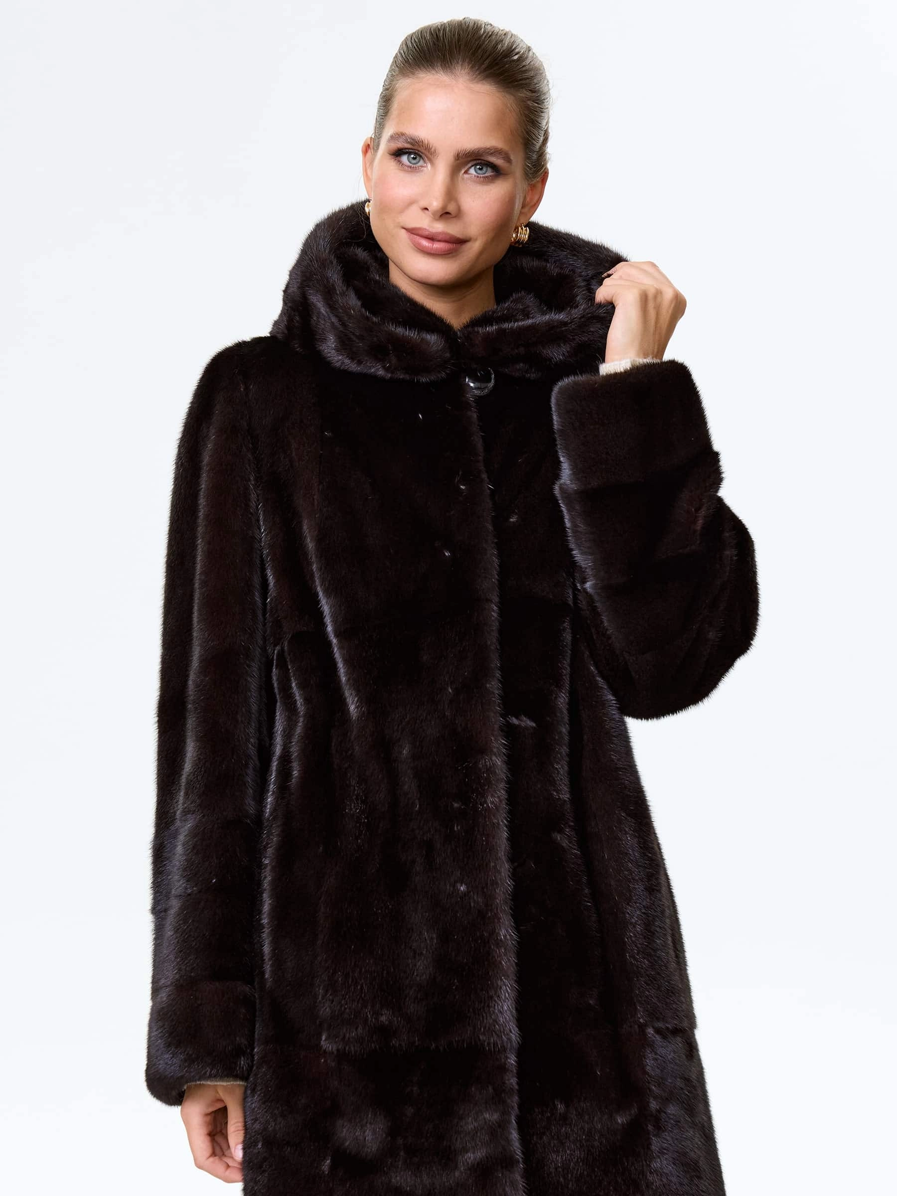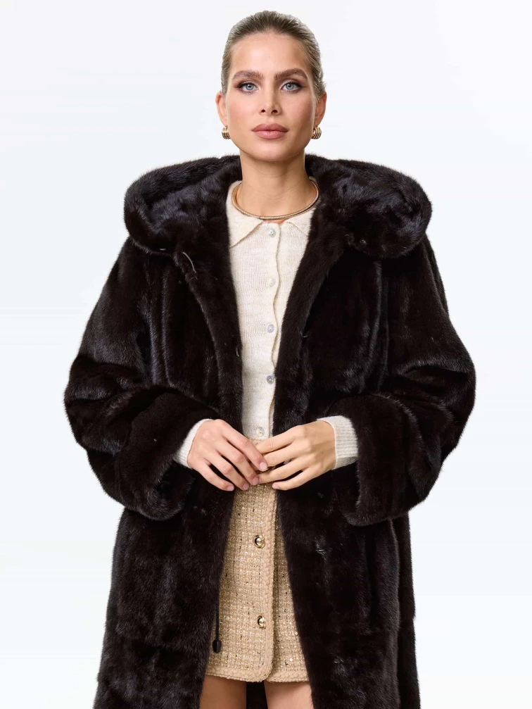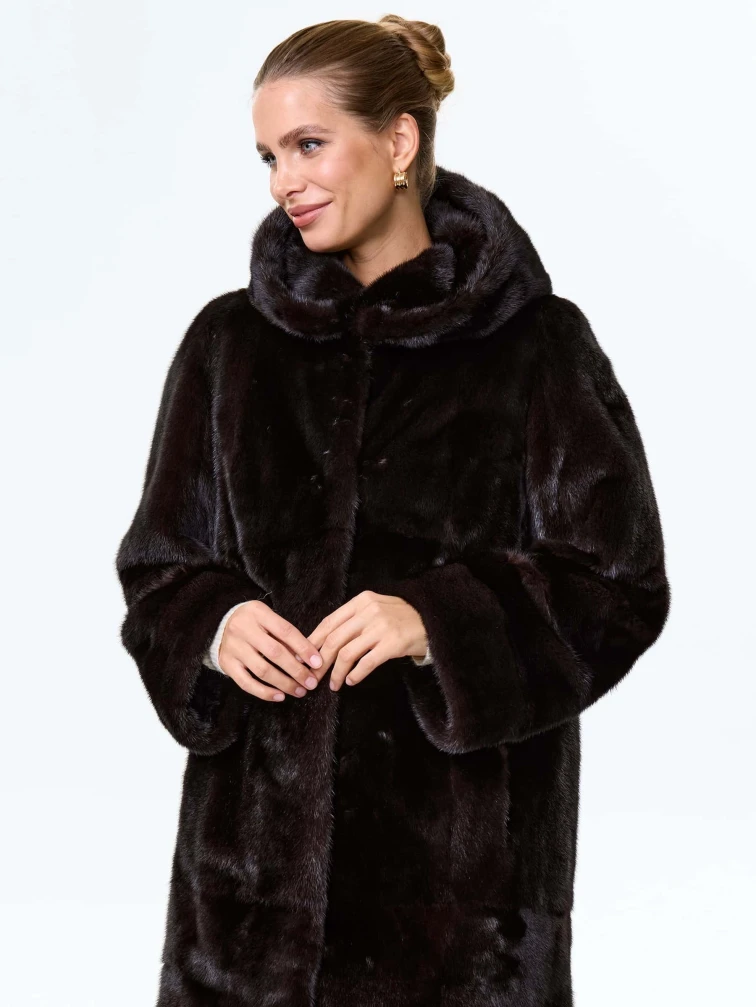 Шуба длинная из меха норки женская Надежда(к), черная, размер 48, артикул 64530