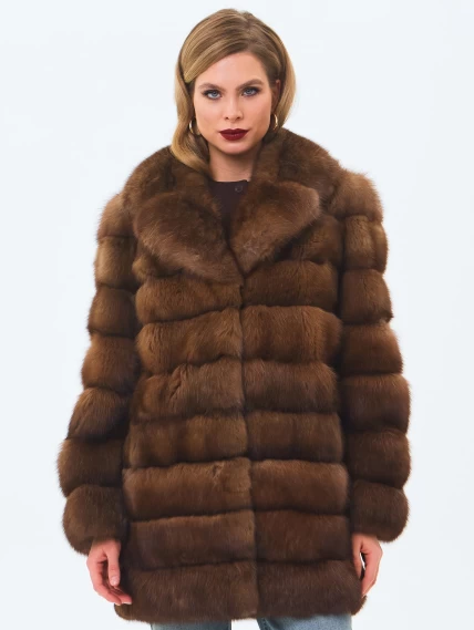 Шуба из меха соболя женская премиум класса 2А, темно-коричневая, размер 46, артикул 34210