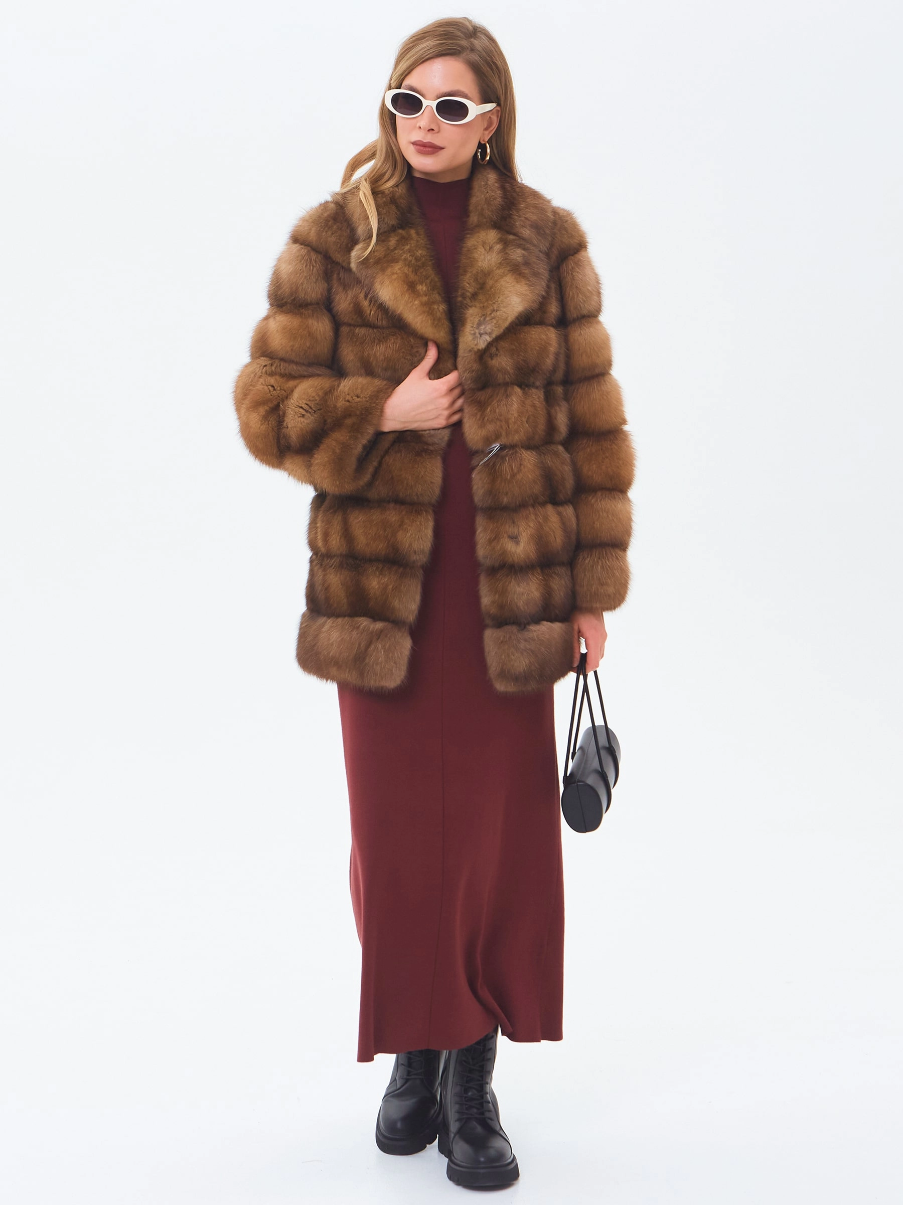Товар шуба из меха соболя женская премиум класса мэри, темно-коричневая, размер 50, артикул 34200 выполнен из соболь с застежкой клипсы. Рассчитан на сезон: зима. Длина изделия 80 см, силуэт прямой.