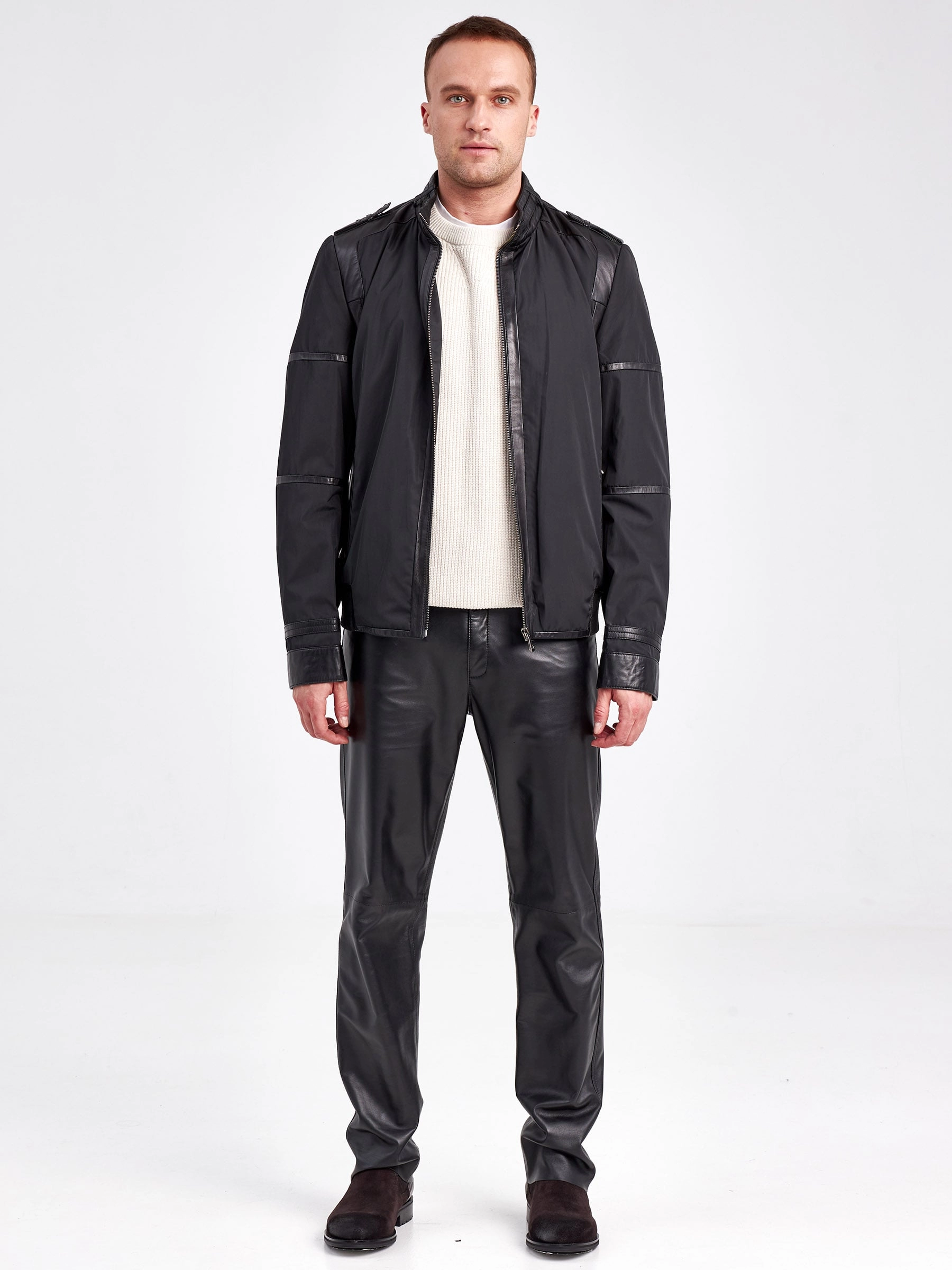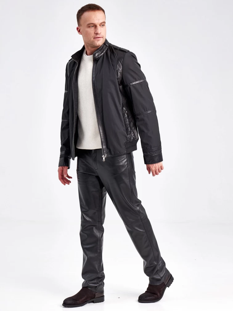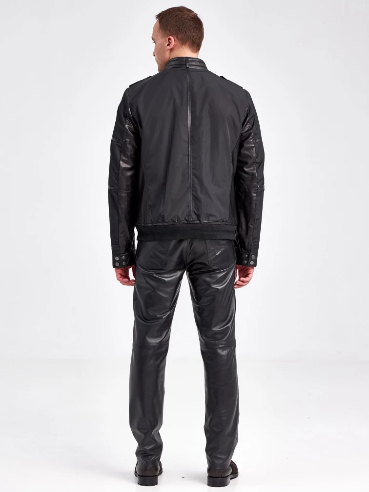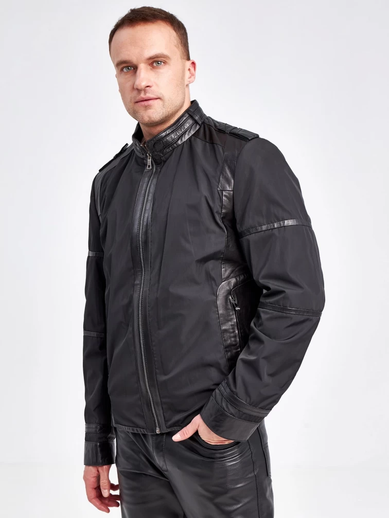 Текстильная мужская куртка бомбер с кожаными отделками 07210, черная, размер 50, артикул 40930