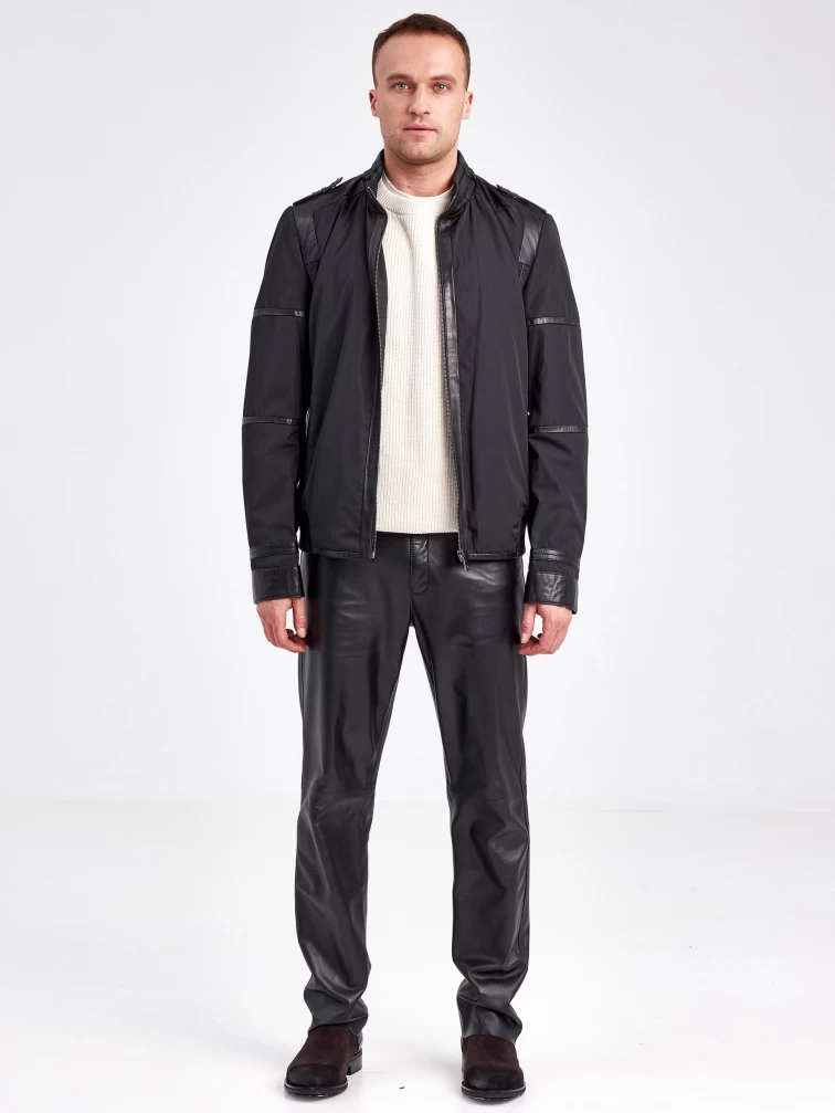 Современная мужская демисезонная куртка с отделками из натуральной кожи.