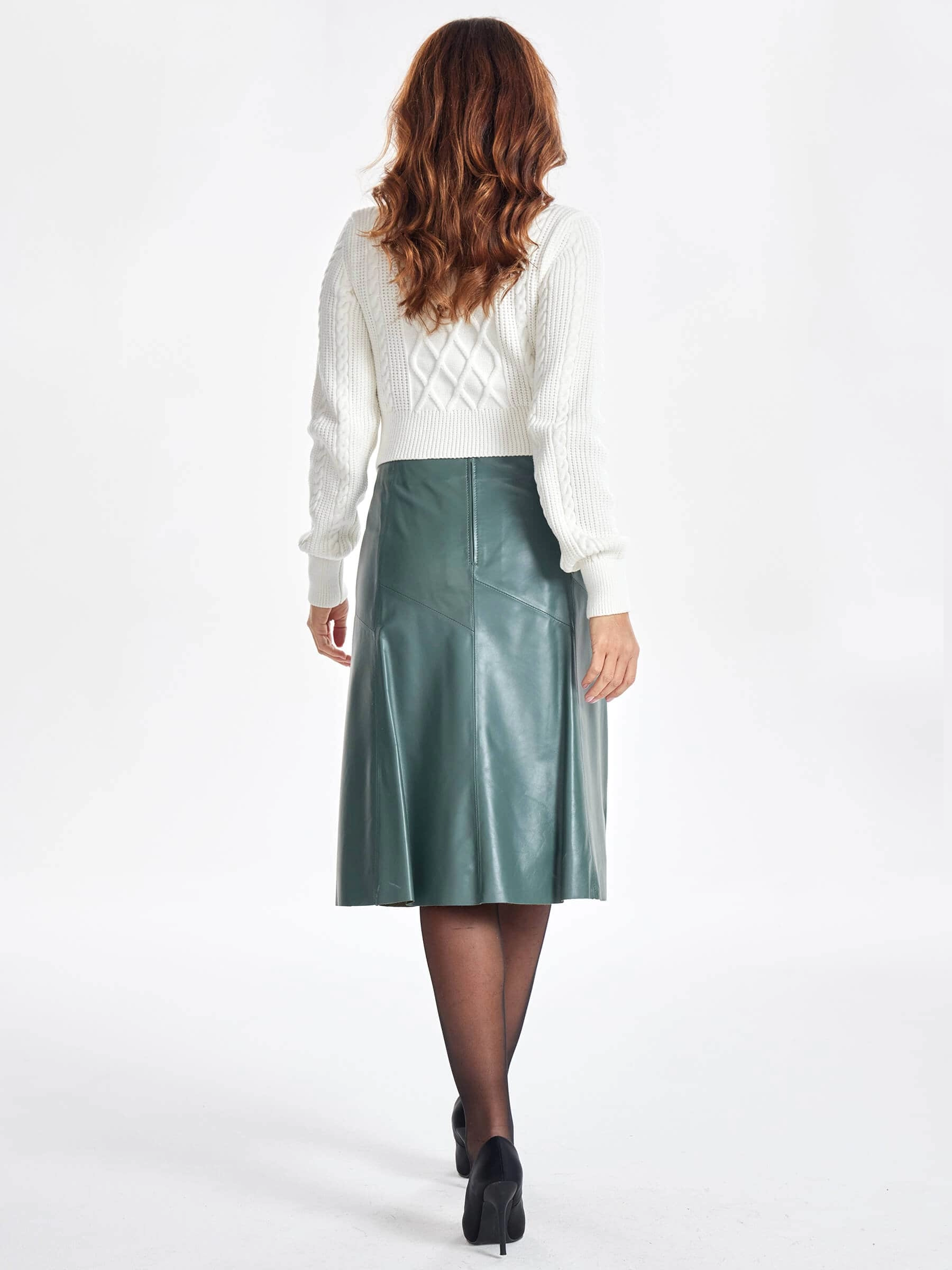 Товар расклешенная кожаная юбка 04, оливковая, размер 46, артикул 85400 выполнен из натуральной кожи с застежкой молния. Рассчитан на сезон: демисезон. Длина изделия 68 см, силуэт расклешенный.