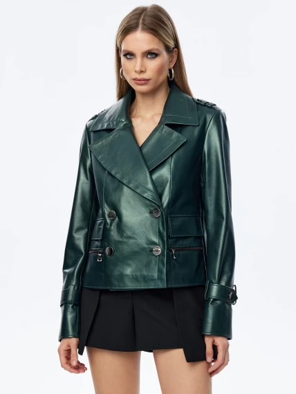 Зеленый женский двубортный кожаный пиджак 3014, размер 48, артикул 91730