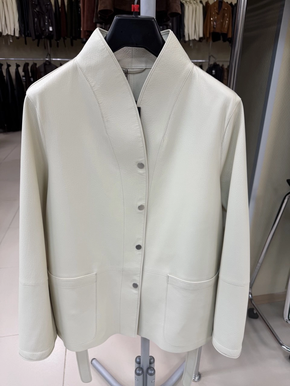 Товар женская белая кожаная куртка 3105, размер 46, артикул 92150 выполнен из натуральной кожи с застежкой кнопки. Рассчитан на сезон: весна-лето. Длина изделия 70 см, силуэт прямой.