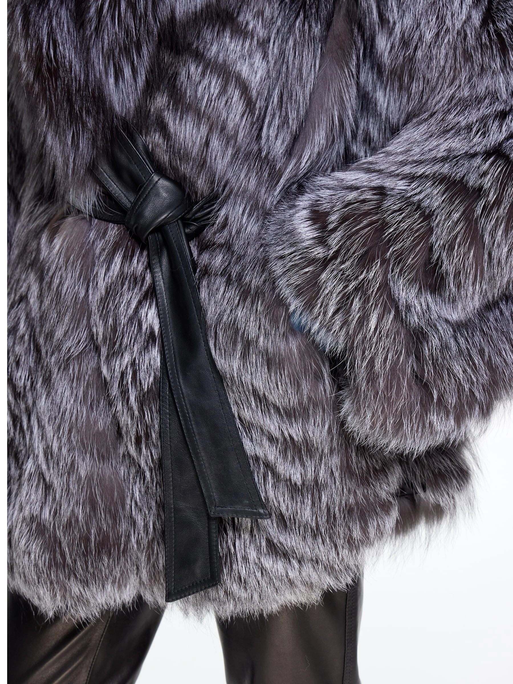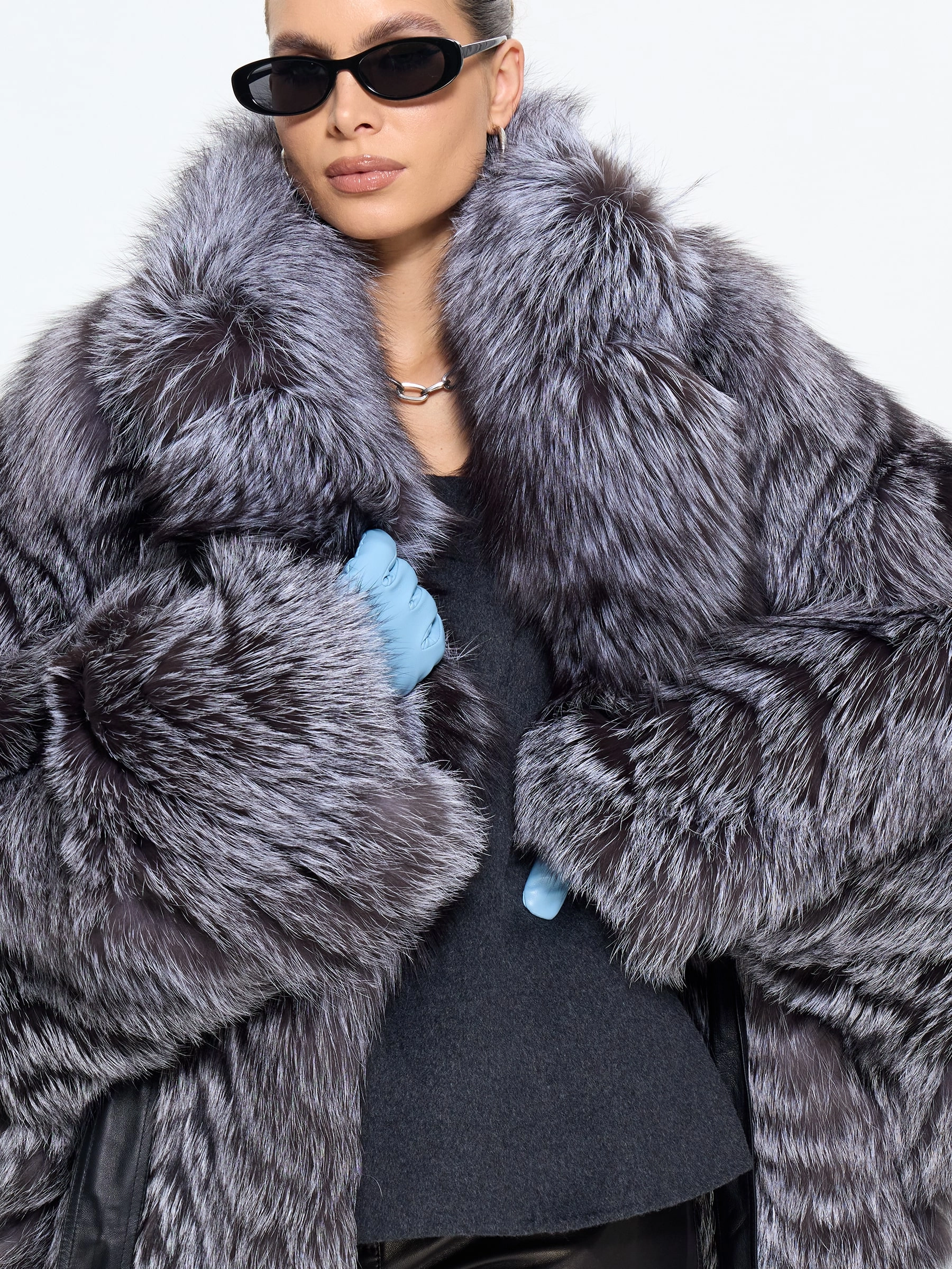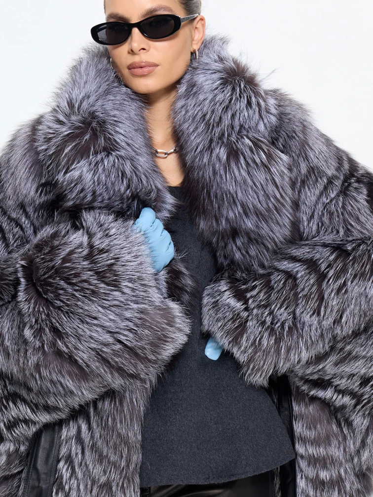 Короткая шуба из чернобурки с воротником английского кроя — это вызов условностям. Свободный силуэт с поясом и рукавом кимоно создает идеальный баланс роскоши и легкости. Сочетайте ее с высокими сапогами и объемным свитером, чтобы выглядеть стильно, дерзко и небрежно-элегантно.