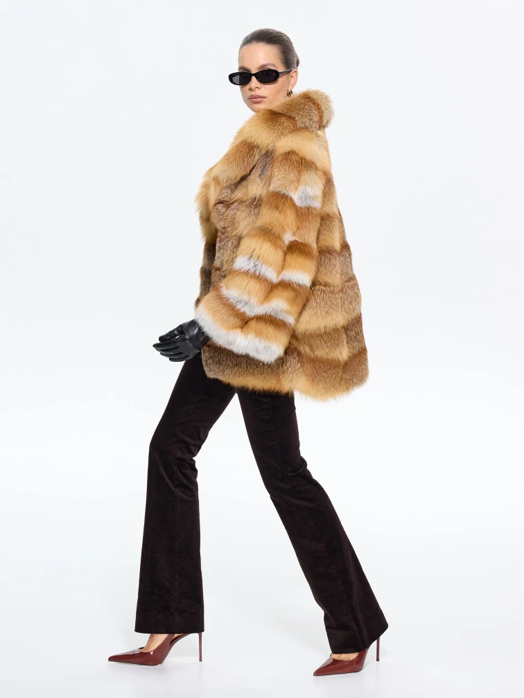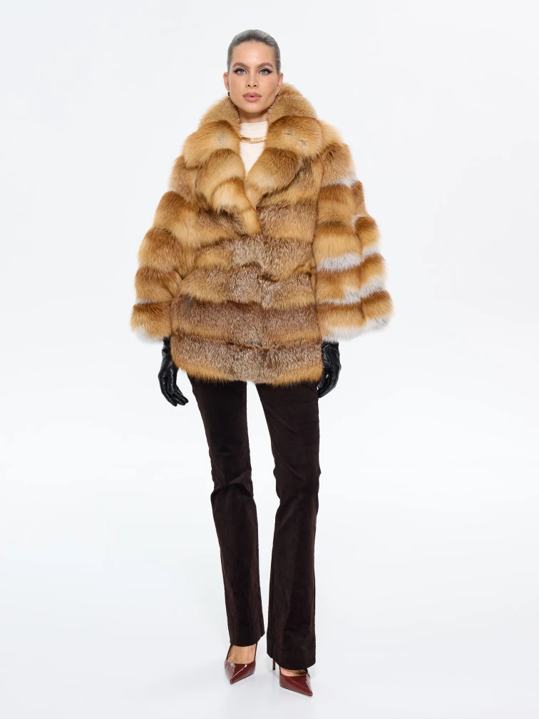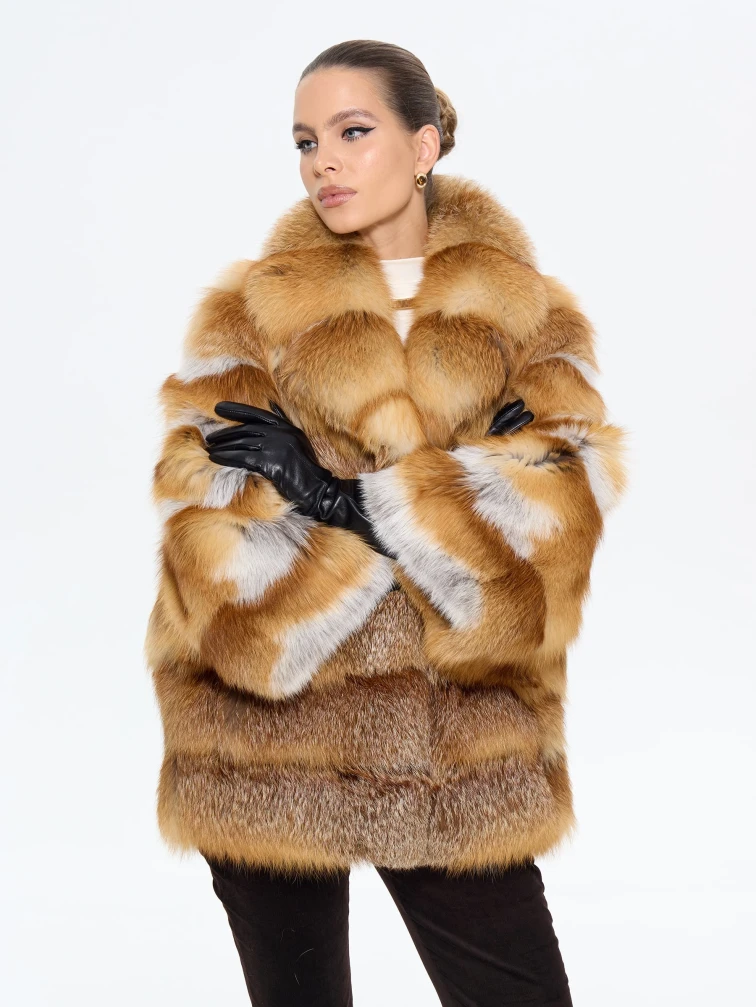 Женская короткая шуба из меха лисы М1010 - 313, рыжая, размер 48, артикул 65280