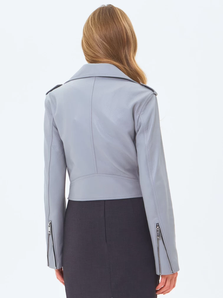Товар женская кожаная куртка косуха с поясом премиум класса 3080, серая, размер 42, артикул 24530 выполнен из натуральной кожи с застежкой молния. Рассчитан на сезон: весна-лето. Длина изделия 46 см, силуэт прямой.