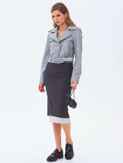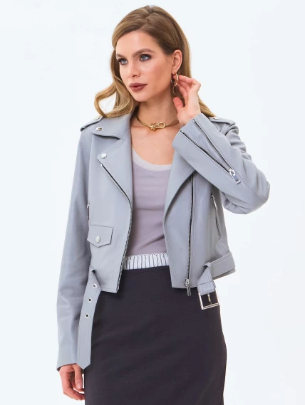 Женская кожаная куртка косуха с поясом премиум класса 3080, серая, размер 42, артикул 24530