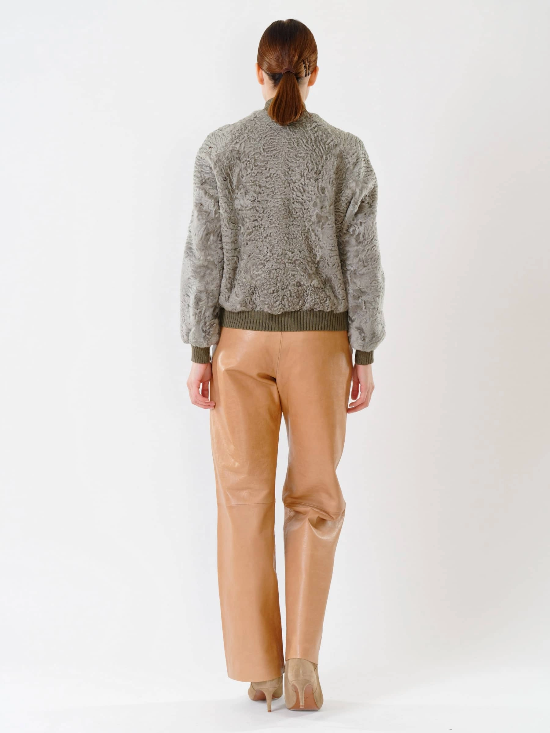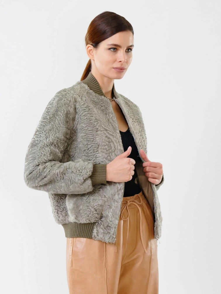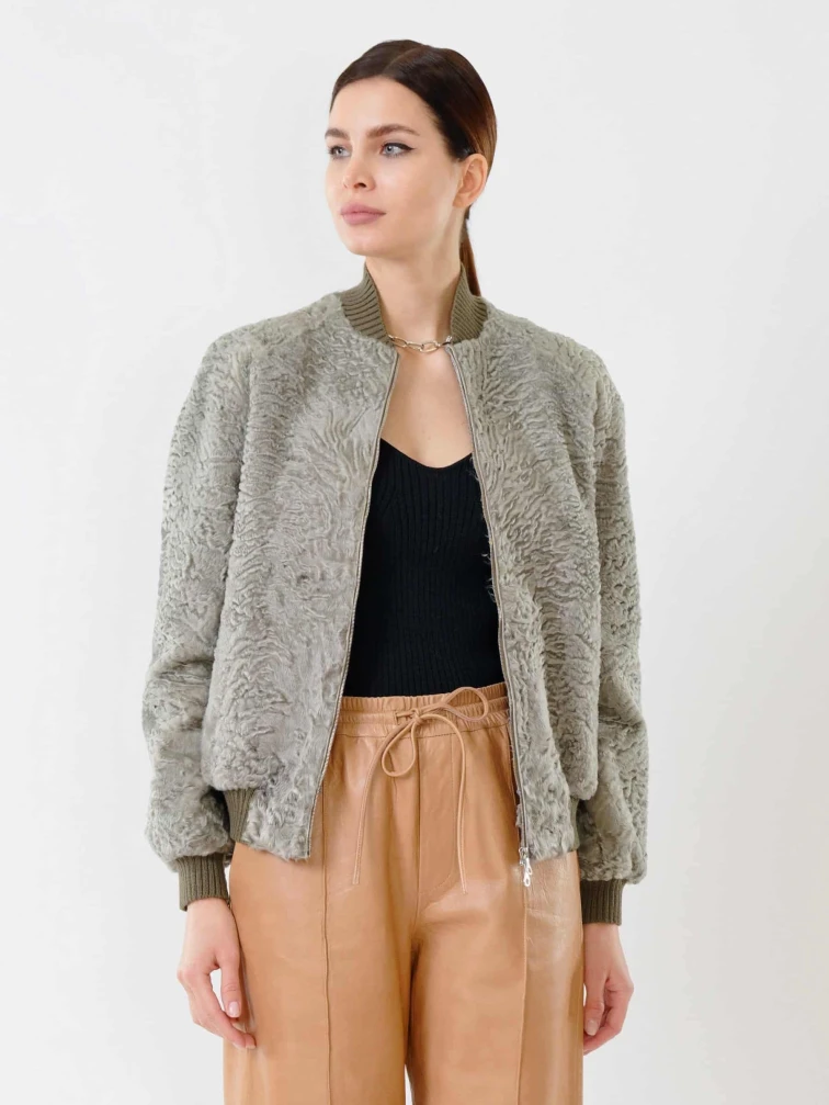 Бомбер из афганского каракуля. Тугой плоский завиток волоса каракуля. Великолепное качество меха. Ювелирный подбор шкурок по оттенку и структуре волоса. Безупречная работа портных. Комфортная посадка по фигуре. Выдержано. Стильно. Ничего лишнего. Премиальный уровень.